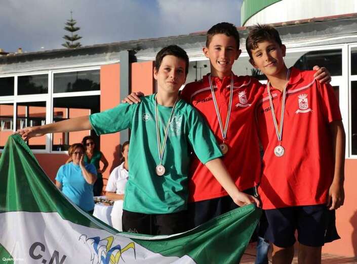 Los nadadores teldenses celebran el éxito de la competición deportiva