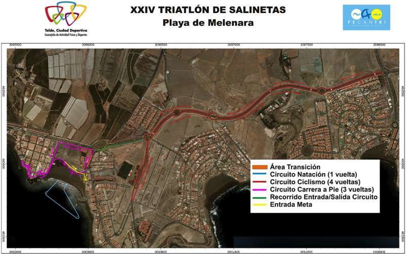 Las distancias a cumplimentar por los participantes serán de un primer segmento de natación en la playa de Melenara, para realizar posteriormente un segundo segmento de ciclismo por el circuito del vial Costero y avenida marítima, finalizando con un tercer segmento de carrera a pie entre Melenara y Salinetas.