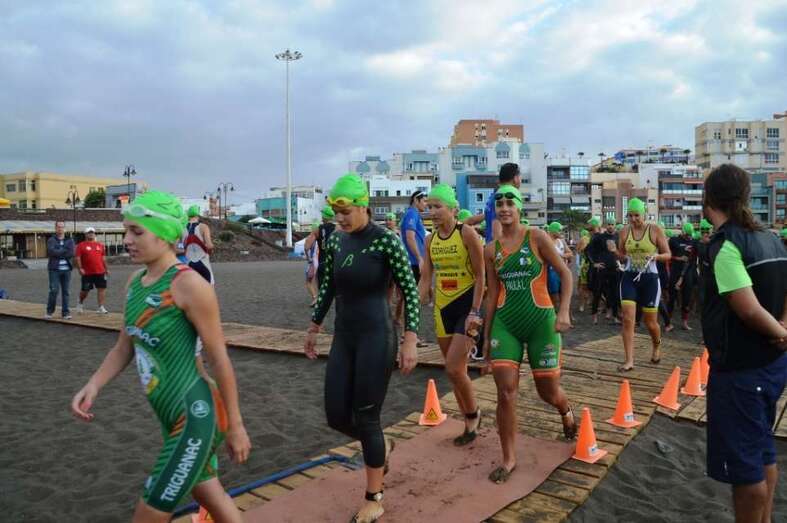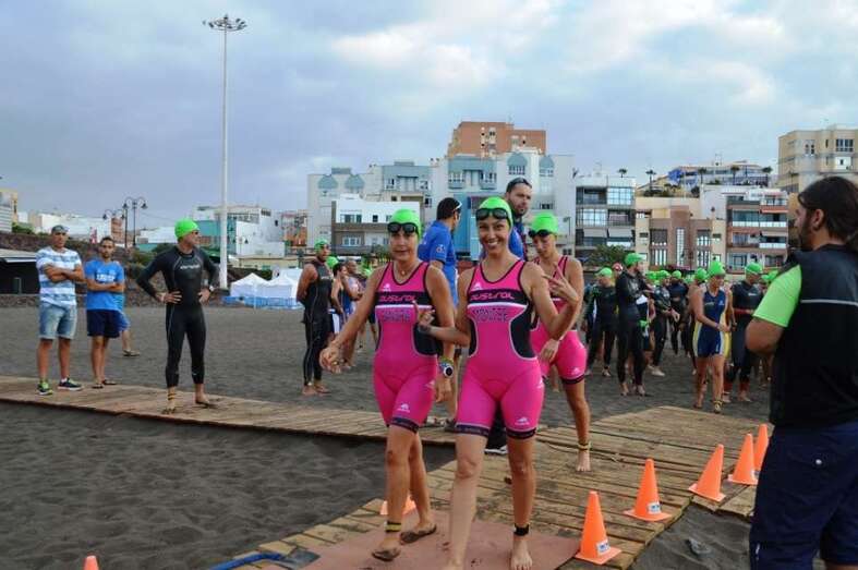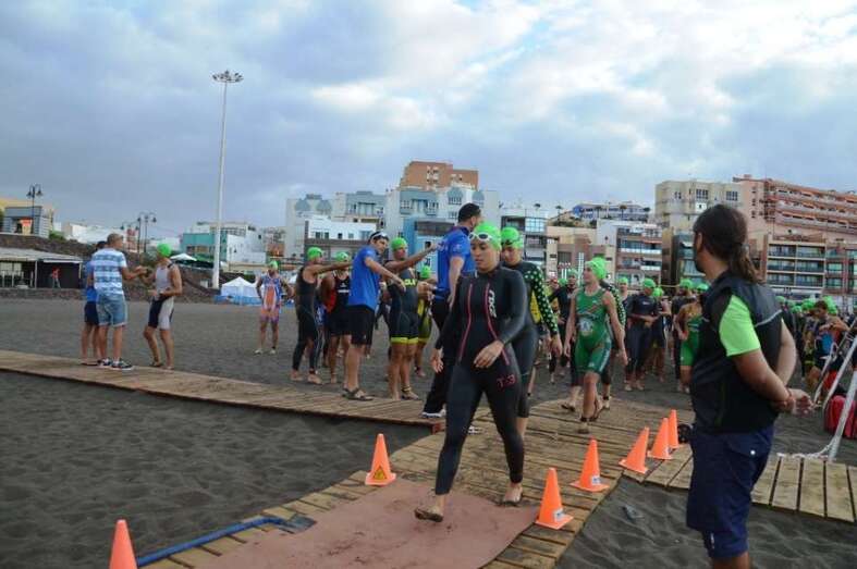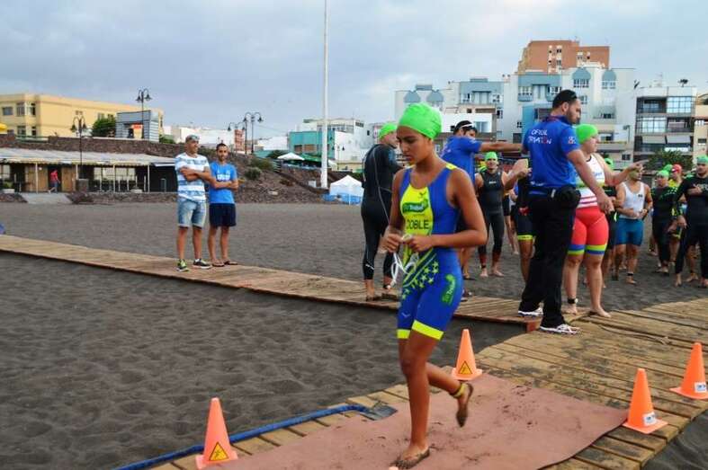 Numeroso público presenció la prueba a lo largo de los diferentes trayectos, que tuvieron que cubrir los más de 200 participantes inscritos en las categorías masculina y femenina. El nuevo concejal de Deportes, Diego Ojeda, estuvo desde el primer momento siguiendo la competición, que se inició unos minutos después de las 8.30 horas cuando dio la salida de la prueba de natación, primero a las féminas y luego a los varones.