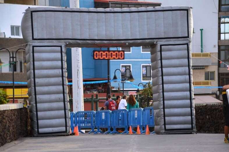 Entró en la meta con un tiempo, aún provisional, de 55.26, a 7 segundos por delante del teldense Gabriel Alemán (dorsal 2), enrolado en las filas del equipo HPS Triatlón , que sacó ventaja a Alejandro Arteaga (dorsal 3), miembro del CN Reales (Tenerife), tercero en discordia. Uxio Abuín, que se entrena de manera esporádica en Canarias, sobre todo en Lanzarote, dominó la prueba desde el principio con un tiempo de 55 minutos 26 segundos, gracias a sus parcial ganador de 8.08 en natación, manteniendo el tipo en bici con 33.59 en ciclismo, pero con el mejor tiempo, 13.18 en carrera.