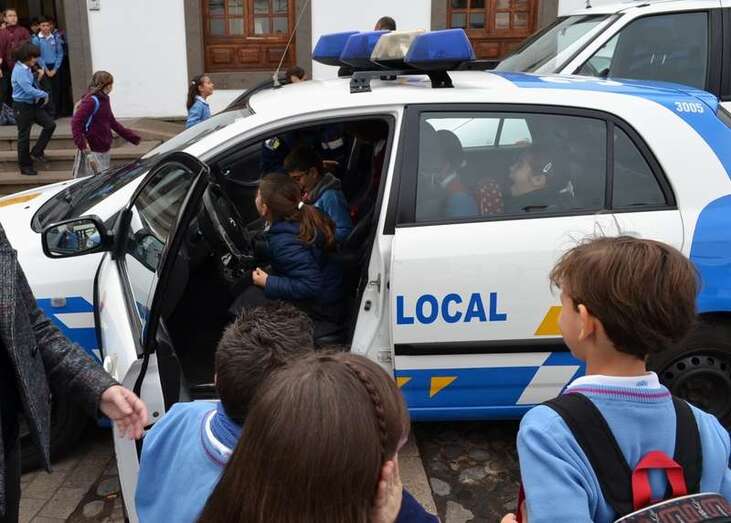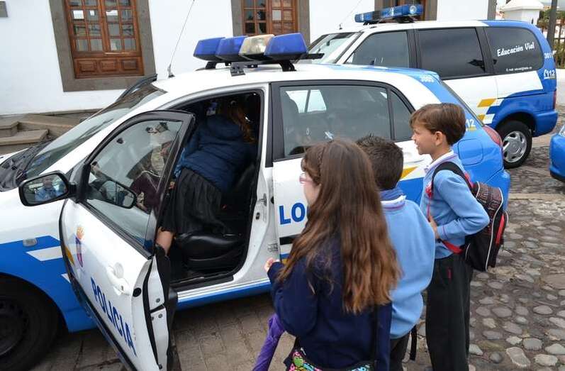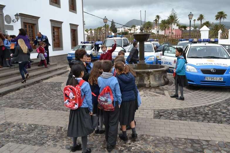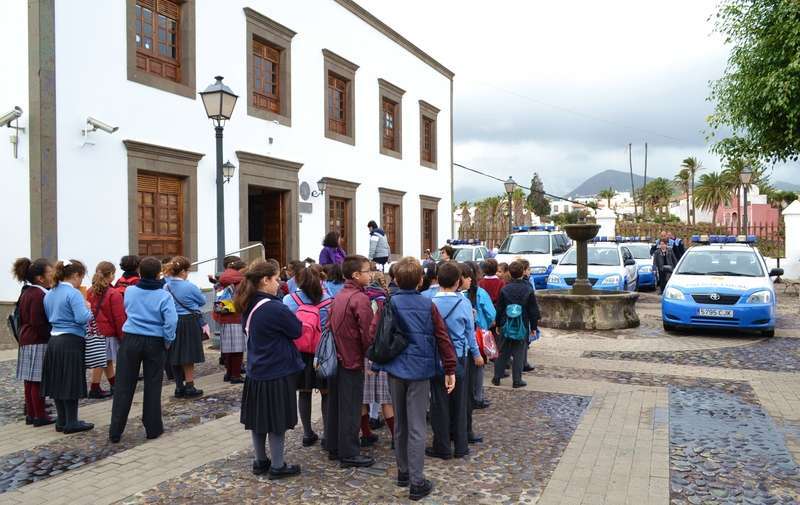 En el Ayuntamiento de Telde les recibió la alcaldesa Mari Carmen Castellano, y el agente Pedro Galván del Departamento de Educación Vial de la Policía Local les guió por las dependencias policiales, en donde estos pequeños de ocho y nueve años se lo pasaron en grande conociendo el funcionamiento del cuerpo e incluso de los coches patrullas.