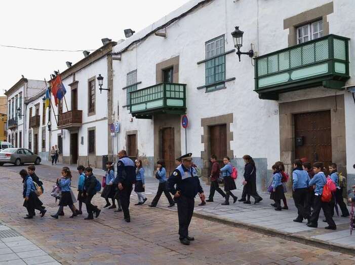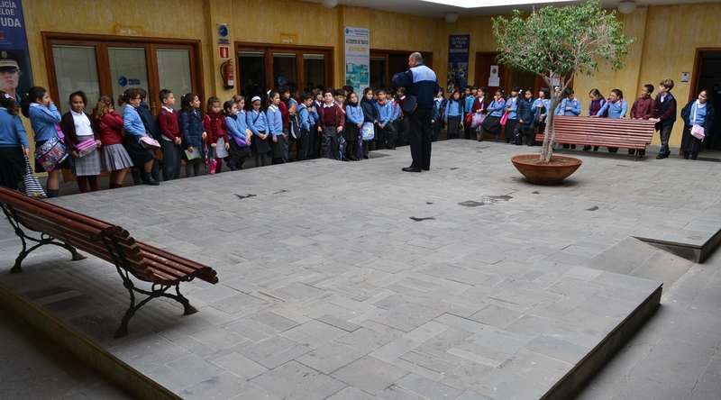 Telde.- Los alumnos de tercero de Primaria del colegio teldense María Auxiliadora disfrutaron este viernes de una jornada muy amena y especial. Los pequeños cambiaron las aulas por una visita al conjunto histórico-artístico de San Juan y San Francisco que también incluyó un recorrido por el Ayuntamiento de Telde y las dependencias de la Policía Local. TA ofrece reportaje gráfico de la visita al Consistorio teldense.