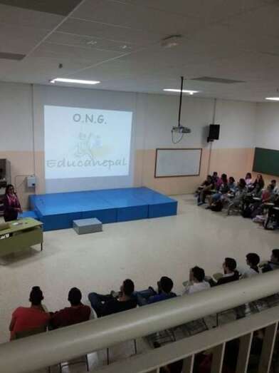El miércoles 12 de febrero el salón de actos del centro acogió a los alumnos de Secundaria que participaron en una charla sobre Educanepal, donde pudieron conocer sus logros, ilusiones y necesidades, impartida por la voluntaria dedicada a tales fines, Blanca Fernández Callejo.