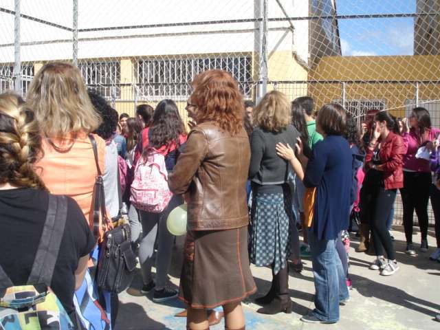 El acto se realizó en la cancha del Instituto de Las Remudas durante el periodo del recreo. Se inició con la lectura de dos pequeños textos: