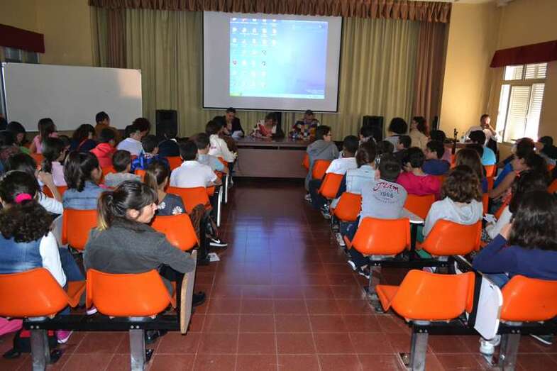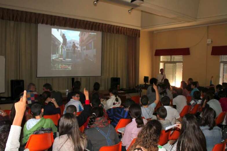 Bajo la atenta mirada de estos alumnos de 6º de Primaria, el artista desveló el proceso creativo que dio origen a estas dos obras elaboradas en bronce. Desde los bocetos en donde plasmó las ideas iniciales, hasta las pequeñas maquetas que fueron evolucionando y dieron paso a unas piezas de mayores dimensiones talladas en polietileno que servirían para confeccionar los moldes en los que más tarde se solidificaría el preciado metal previamente fundido.