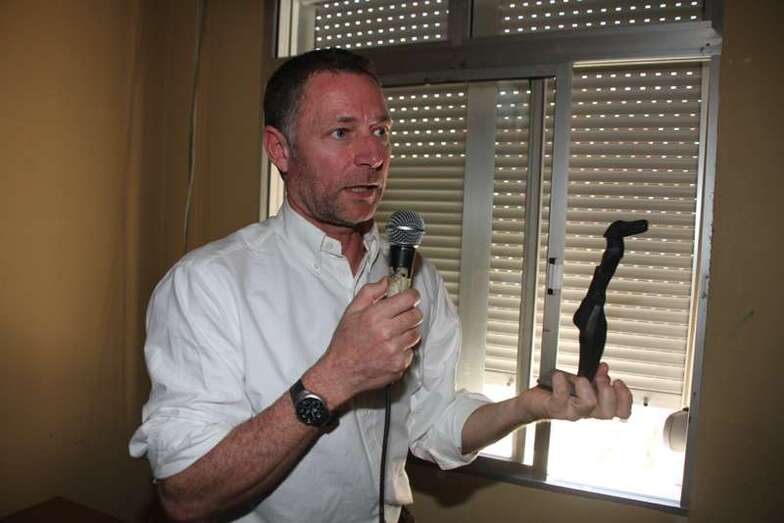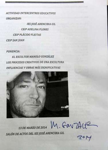 En el programa de presentación de la ponencia repartido en el centro, se adjunta la biografía y obra del escultor, con la salutación e información de la dirección del IES, sobre el propósito de estos encuentros culturales y artísticos dirigidos al conocimiento del alumnado: “Un año más el Equipo de Distrito convoca un encuentro con el alumnado de 6º de Primaria, con su profesorado y con el IES José Arencibia Gil. El objetivo del mismo es reforzar los vínculos que nos unen a través del desarrollo de la competencia cultural y artística que redunda en la tecnología a través del trabajo previo que realiza el alumnado así como la competencia social y ciudadana y el logro de su autonomía e iniciativa personal.