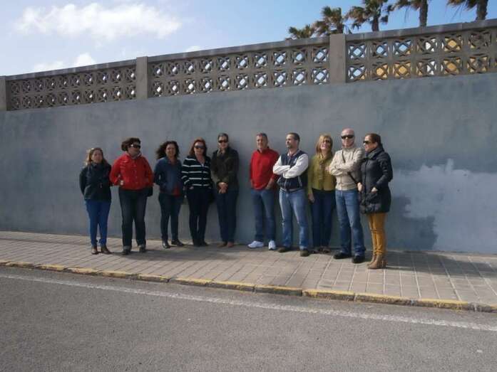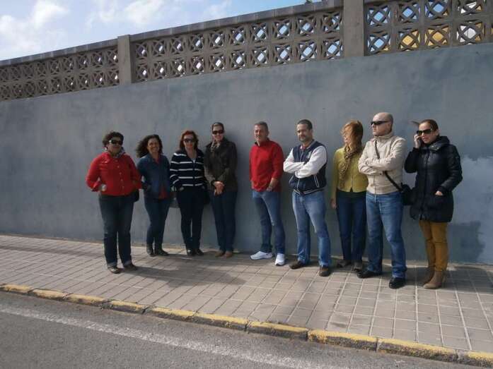 Trabajadores del centro de Melenara protestando este martes (Foto TA) Trabajadores del centro de Melenara protestando este martes (Foto TA)
