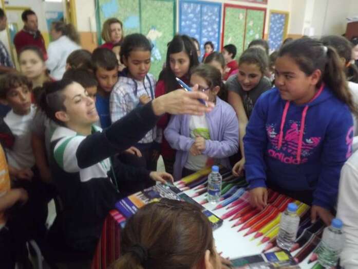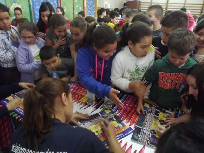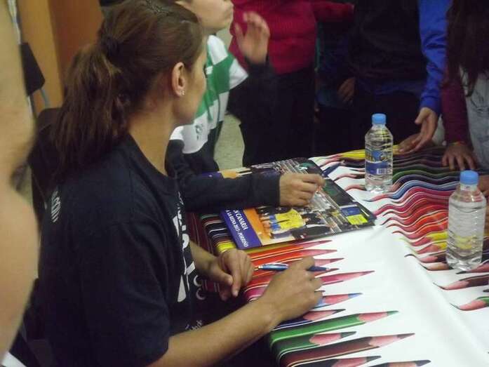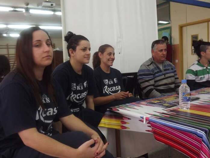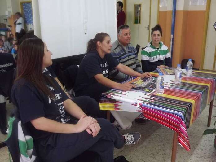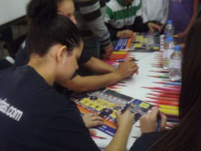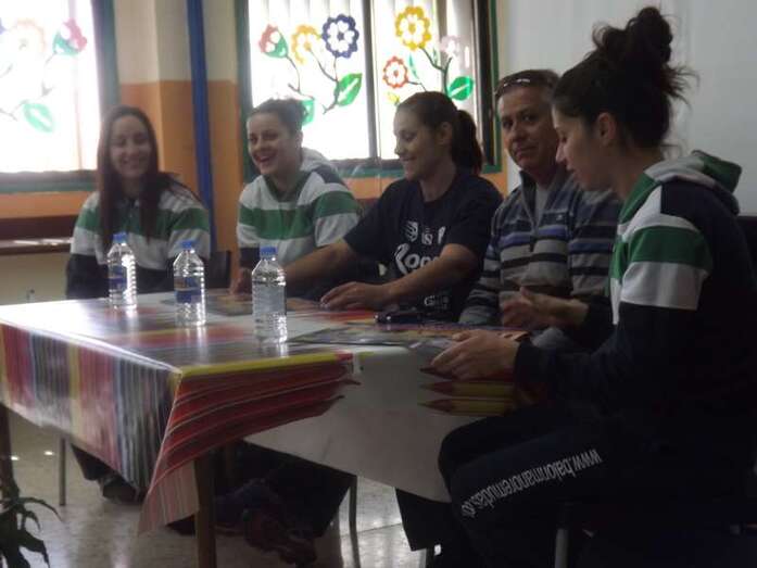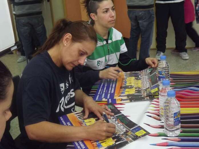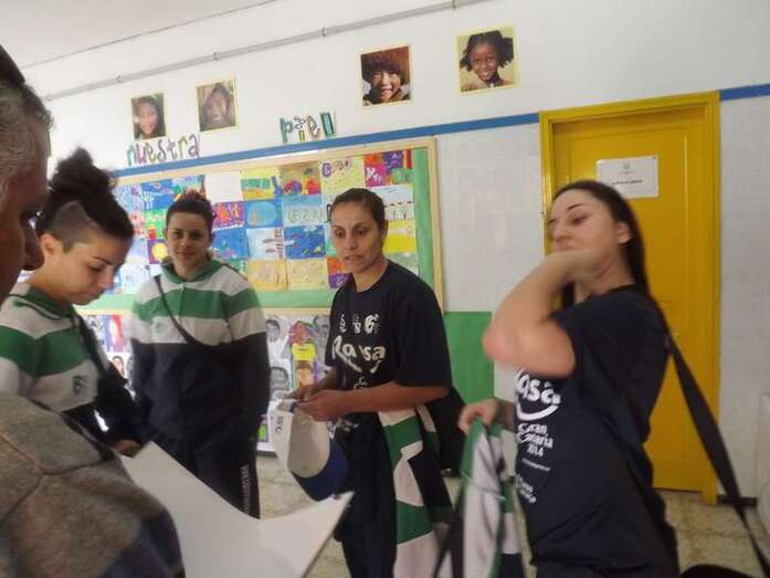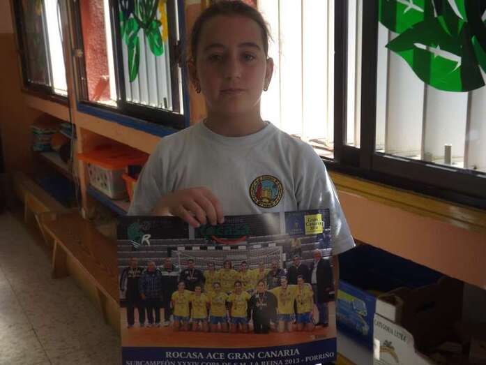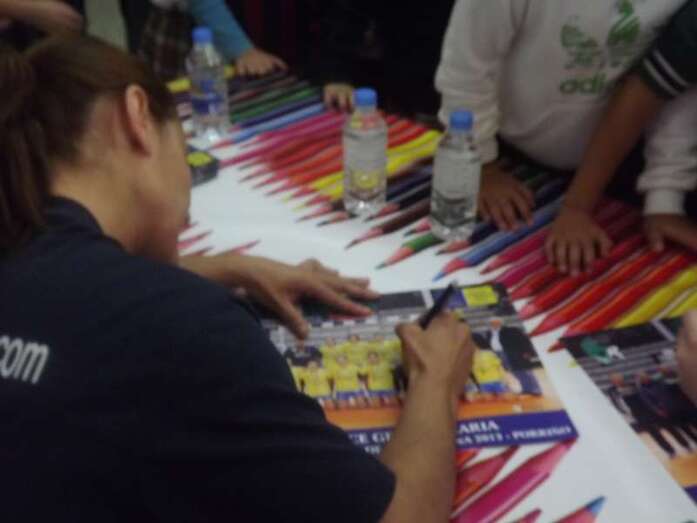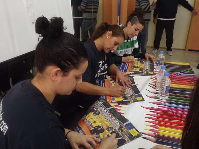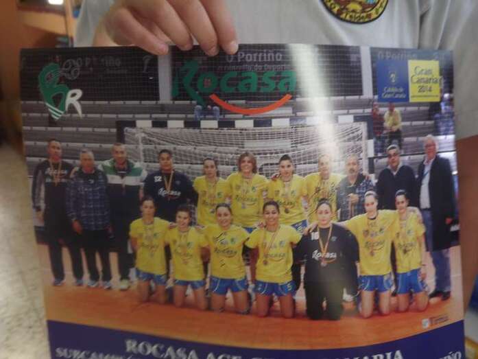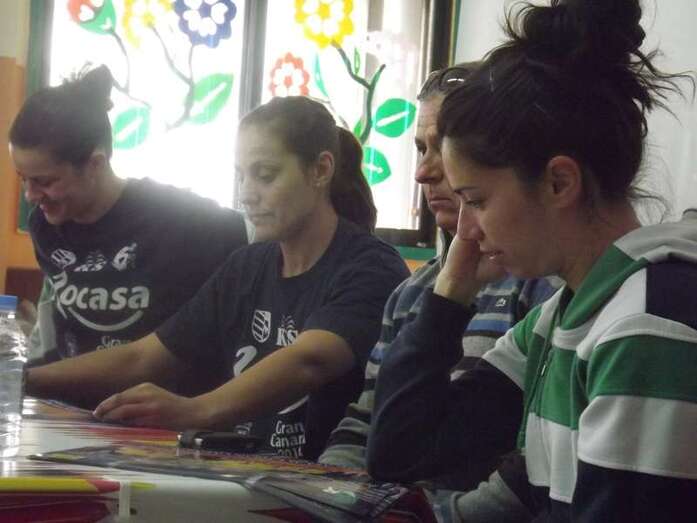 Para finalizar, las cuatro deportistas teldenses firmaron y entregaron a los alumnos del colegio público más de 60 carteles con la foto de formación del equipo que quedó subcampeón de la Copa de la Reina en Porriño en 2013.