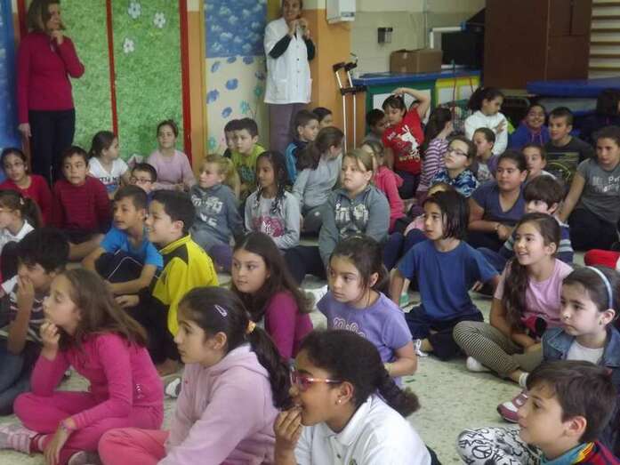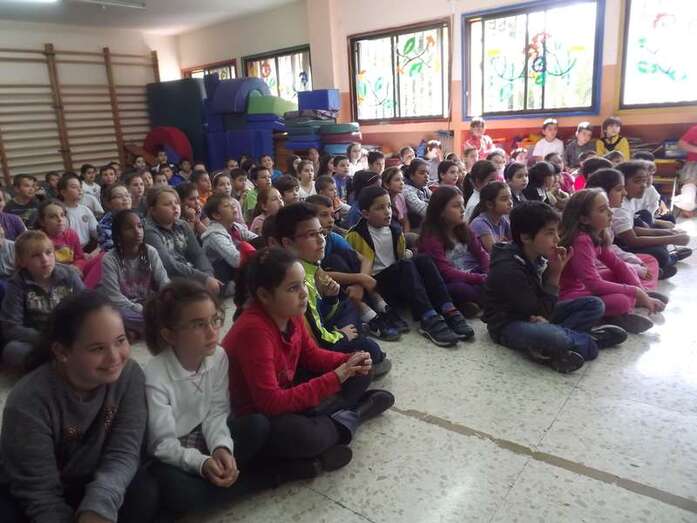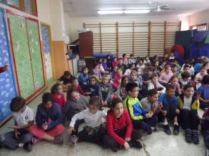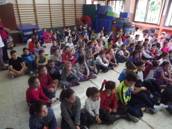 Telde.- Las jugadoras del Rocasa Gran Canaria ACE, Tiddara Trojaola, Davinia López, Melania Falcón y María González, y el entrenador del equipo, Paco Santana, visitaron este miércoles a los niños de 3º y 4º de Primaria del CEIP Plácido Fleitas, donde durante cerca de 45 minutos respondieron las preguntas de los menores y repartieron carteles firmados por las deportistas. TA ofrece reportaje gráfico del acto.