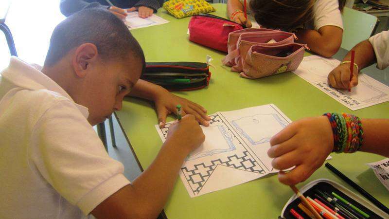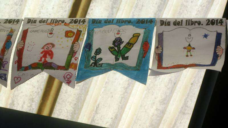 Los estudiantes también tuvieron ocasión de leer sus libros y cada uno de ellos confeccionó un banderín con sus poemas, dibujos alusivos a sus obras, títulos de cuentos, etcétera, para decorar el patio del colegio y unirse a la red de banderines solidarios de Telde.