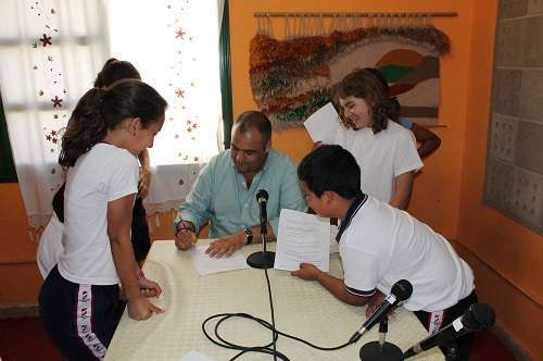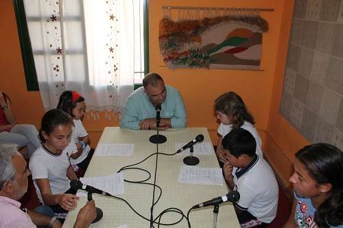 El verseador concluyó su estancia en el centro concediendo una extensa entrevista en Radio Los Picos, FM 93.3, realizada por una representación de escolares que ha podido escucharse, en directo, desde las aulas del centro, que también podrá seguirse en la programación diferida de este fin de semana.