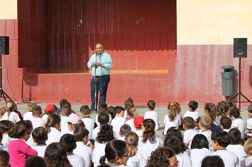 El verseador compartió una jornada con los niños de Infantil y Primaria dentro de las actividades por el Día de Canarias
