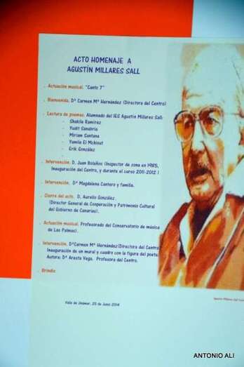Telde.- El IES Agustín Millares Sall, en el Valle de Jinámar, rindió este viernes homenaje al ilustre poeta grancanario Agustín Millares Sall, Premio Canarias de Literatura y a quien este año se le ha dedicado el Día de las Letras Canarias. TA ofrece reportaje gráfico del acto.