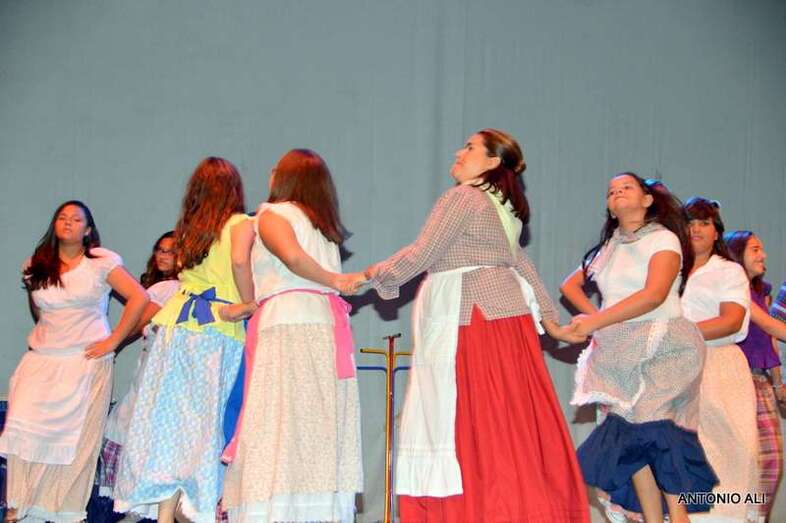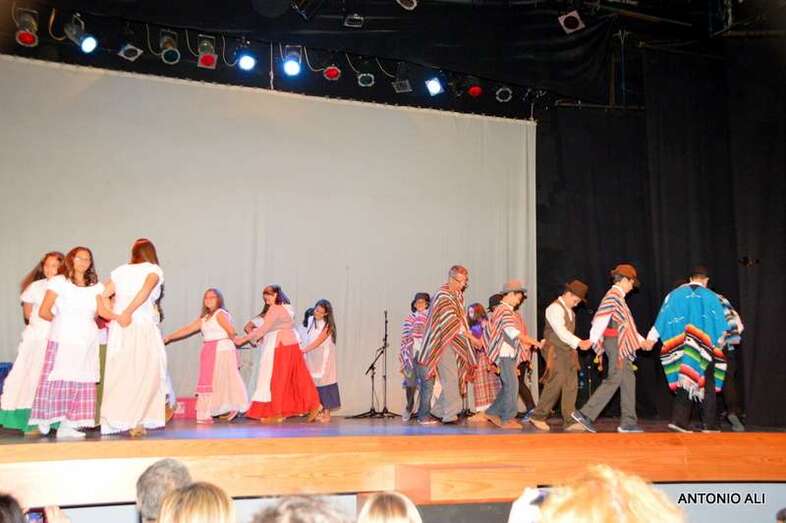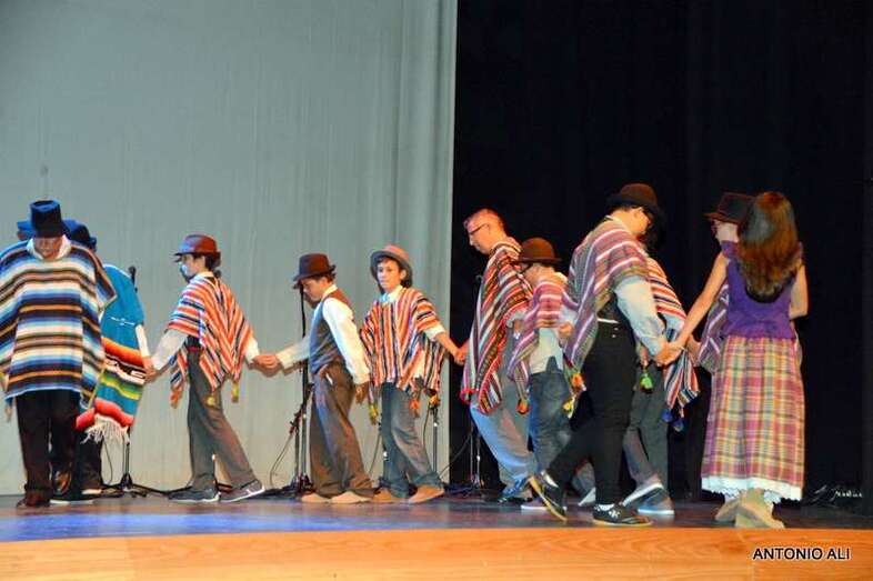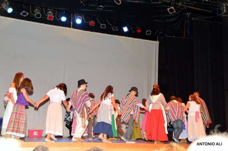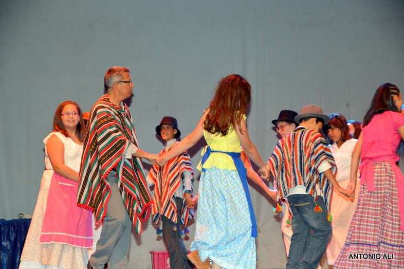 Interviene un grupo de alumnos en Danzas del Mundo, un proyecto que se lleva en el colegio desde hace 14 años, y como dinamizador y coordinador el compañero Domingo. Una primera danza, El Carnavalito de Bolivia, en este curso en nuestro centro hemos viajado, solo virtualmente, a Bolivia e Inglaterra. Ha sido una experiencia enriquecedora para todos. Las danzas que les mostraremos es fruto de un aspecto más de las costumbres de estos países. La República de Bolivia, en Sudamérica, sus lenguas oficiales son el español, quechua y aymara. Los bolivianos son eminentemente agrícolas y mineros, producen gas, plata, bronce, y oro, son la base de su economía. En todo el país tienen 32 etnias, el tinku, diablada, caporales, morenadas, taquirari, cueca, y el carnavalito son las danzas más populares de Bolivia que en cualquier ocasión y motivo se bailan. El carnavalito es de las danzas más populares, se baila en cualquier ocasión, el más importante es el Oruro, que tiene muchas variantes. La que ejecutaran los alumnos en este escenario es de pisada corta y firme, marcando el ritmo, en filas sueltas, alzando los brazos y dibujando figuras, líneas rectas, onduladas, en forma de caracol.