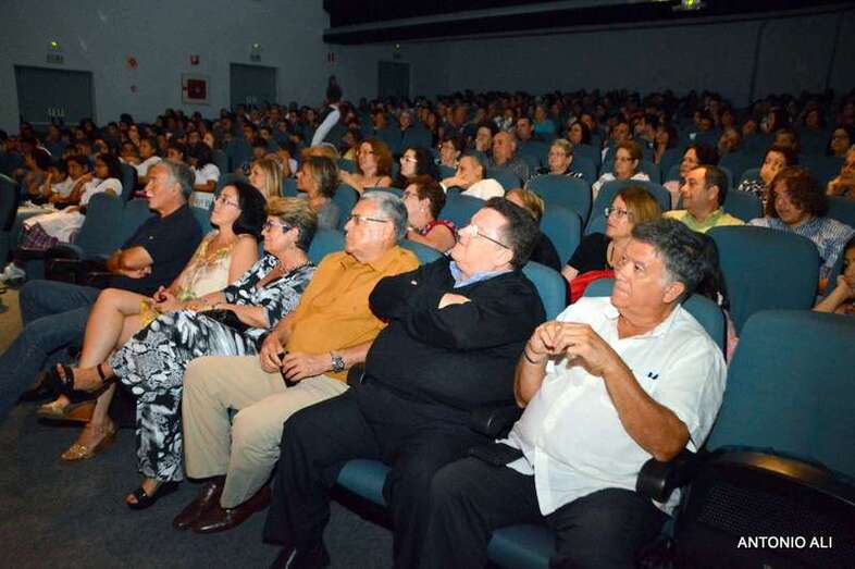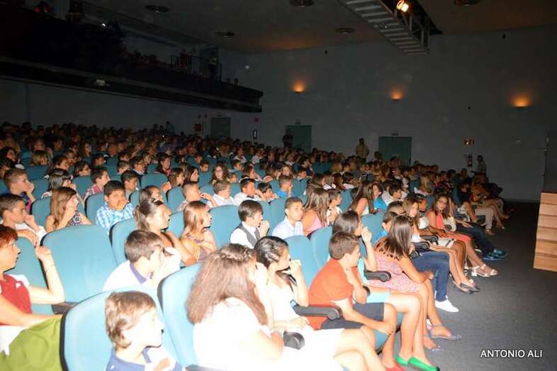 El Teatro Municipal de Juan Ramón Jiménez registró una gran asistencia de alumnos, profesores y padres y madres. Entre los invitados se encontraban el exinspector de zona Juan Bolaños, el exdirector del centro, José Báez Naranjo y el escultor Máximo Riol.