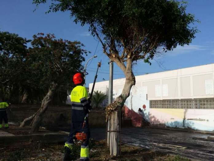 Telde.- Las Concejalías de Parques y Jardines, y Servicios Municipales, que dirige Mario Torres, y la concejalía de Limpieza, que gestiona Héctor Suárez, han acometido labores de poda, limpieza y adecentamiento en el entorno del CEIP José Tejera Santana, dentro del planning de trabajos que se está desarrollando en el barrio del Jinámar.