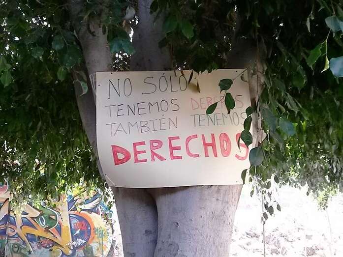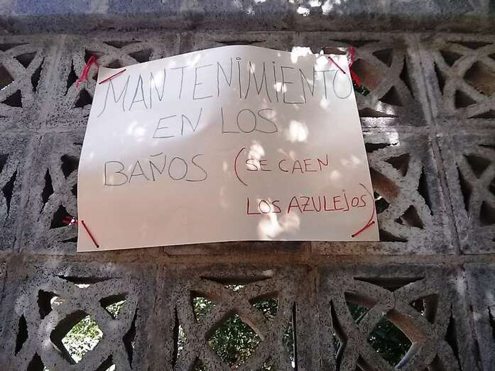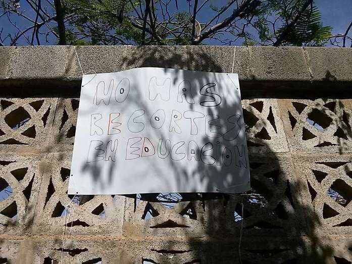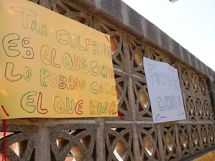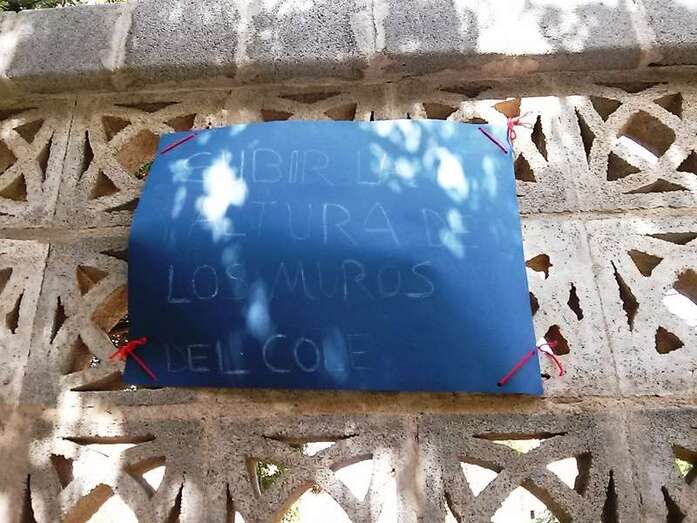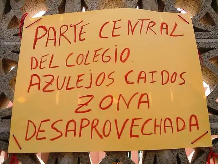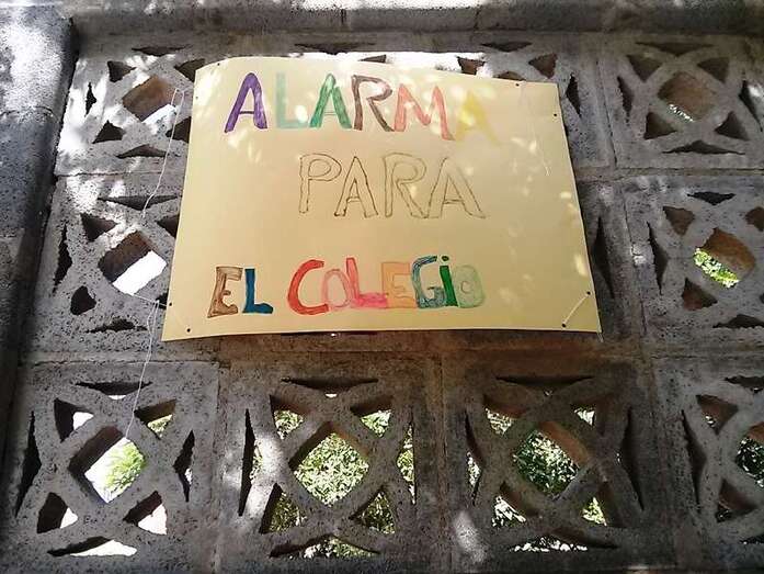 Los padres denuncian la situación del centro con carteles colocados en los muros del colegio (Foto TA) Los padres denuncian la situación del centro con carteles colocados en los muros del colegio (Foto TA)