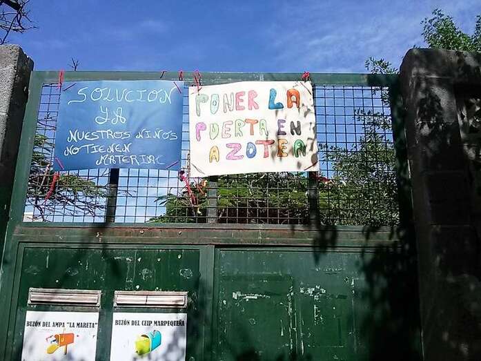 Un grupo de madres de alumnos pide al Ayuntamiento de Telde que intervenga cuanto antes y dote al CEIP de Marpequeña de alarma y cámaras de seguridad. También instan a que se obligue a los usuarios del parking aledaño al colegio a que aparquen sus coches alejados del muro del centro para que los vehículos no faciliten el acceso a los cacos.
