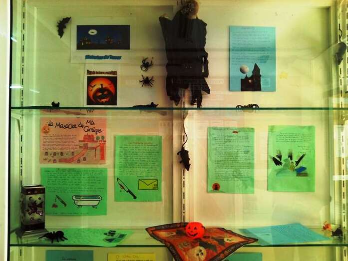 Por otro lado, se montó una exposición por parte de profesoras del Departamento de Lengua sobre relatos e historias terroríficas realizadas por alumnos de 1º, 2º y 3º de la ESO y que se puede disfrutar desde el miércoles 29 en la vitrina ubicada en el acceso al edificio principal del centro.