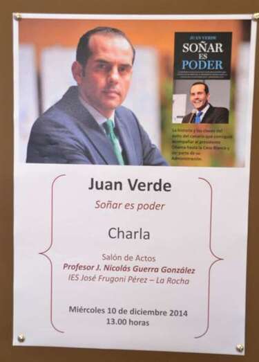 Telde.- El IES José Frugoni Pérez La Rocha recibió este miércoles una visita muy especial. La del teldense Juan Verde Suárez, asesor político y económico que hasta hace bien poco trabajó para el presidente de los Estados Unidos, Barack Obama. Verde visitó su antiguo instituto para ofrecer una charla a los alumnos de Bachillerato.