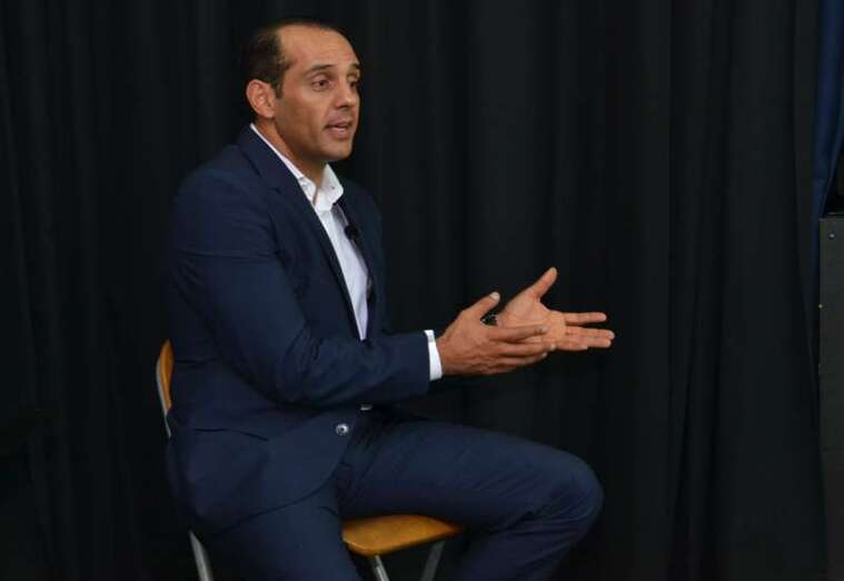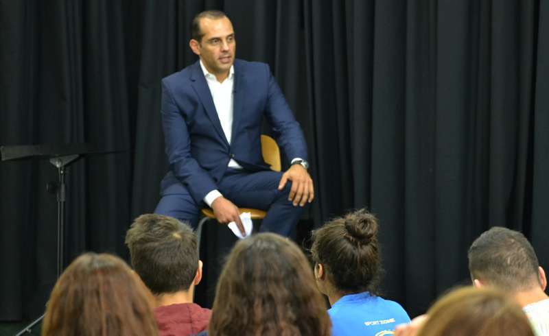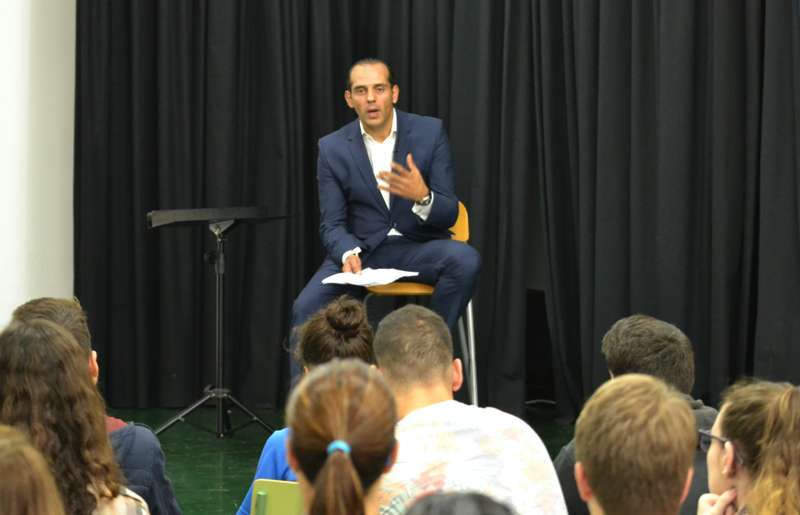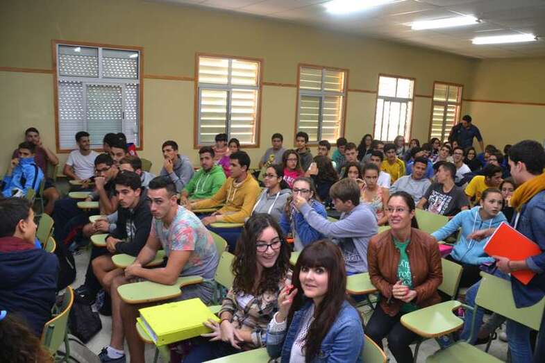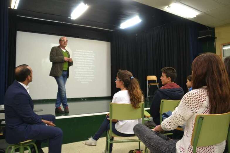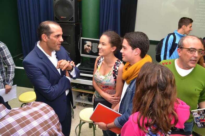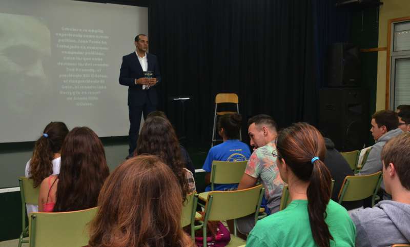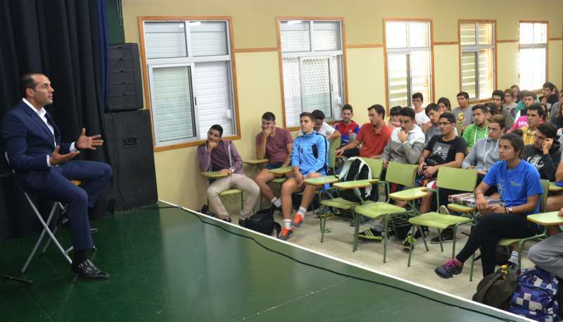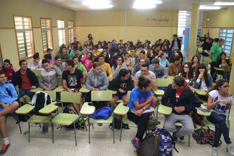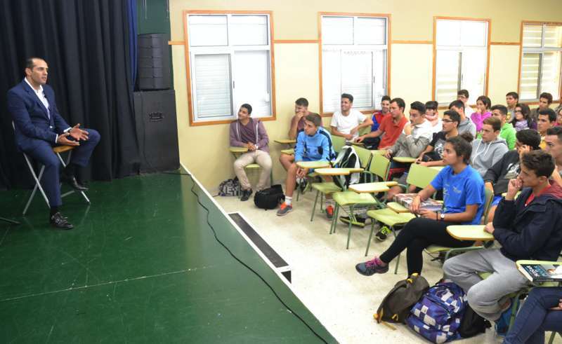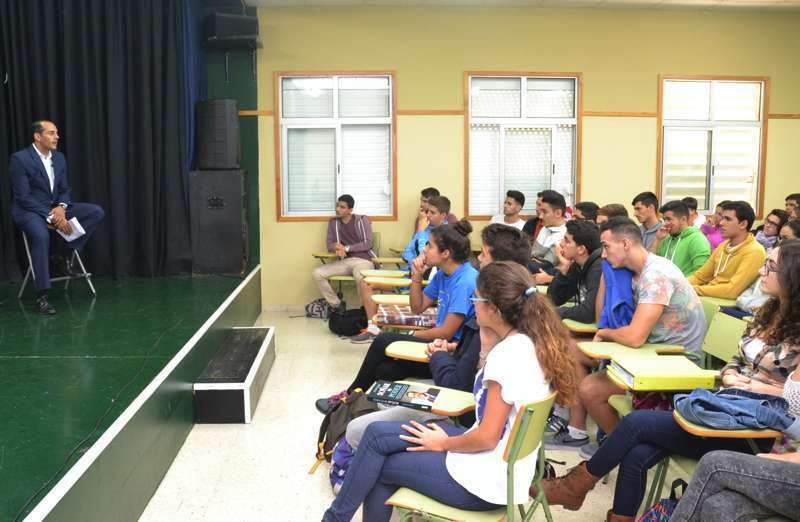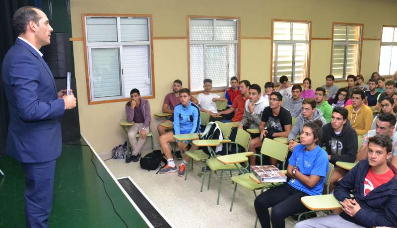 El teldense Juan Verde Suárez retornó a su ciudad natal en un viaje exprés y en su apretada agenda buscó un hueco para alentar a los jóvenes estudiantes de 2º de Bachillerato ante el que seguramente será el reto de sus vidas: abandonar el instituto y enfrentares a un futuro laboral que pinta cada vez más complicado.