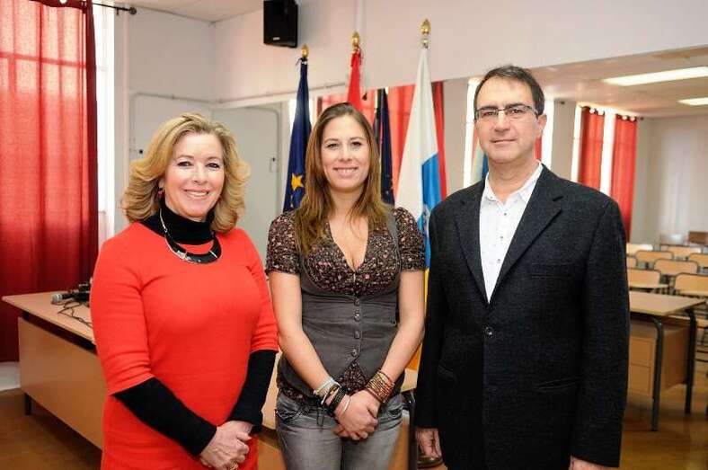 Ainoa Carmona, junto a su profesor de Literatura y la directora del CEPA Telde-Casco (Foto TA) Ainoa Carmona, junto a su profesor de Literatura y la directora del CEPA Telde-Casco (Foto TA)