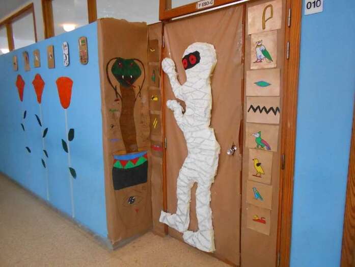 Telde.- Las puertas y paredes de las aulas de varios grupos del IES José Frugoni Pérez (La Rocha) se han “disfrazado” durante estos días con motivos alusivos al tema de Historia que estaban estudiando. Desde el antiguo Egipto hasta los ‘felices años 20’ o desde Roma hasta la Revolución Industrial. De esta forma celebraron el Carnaval.