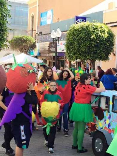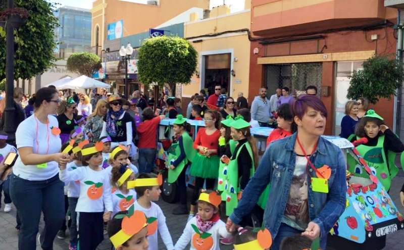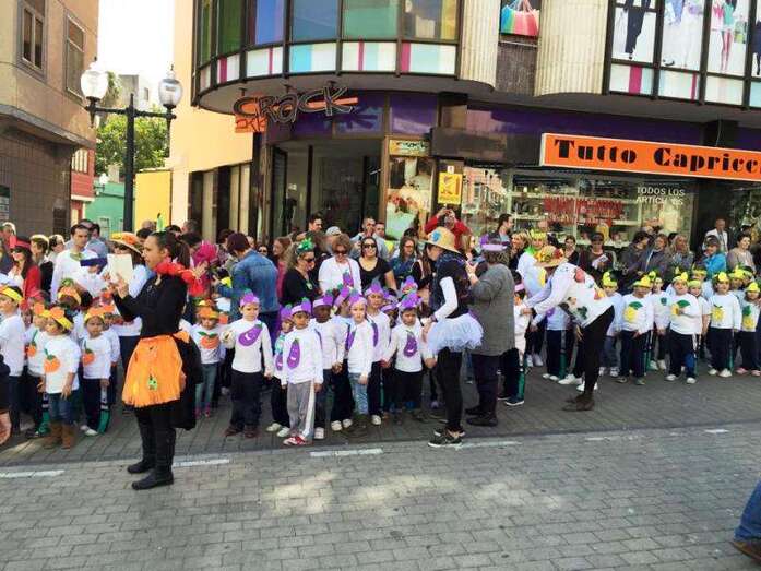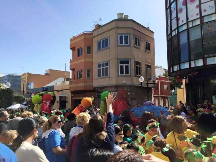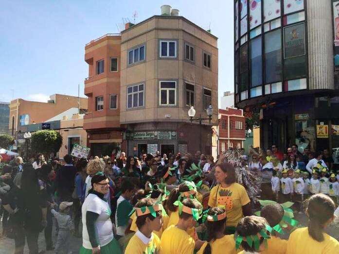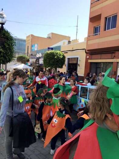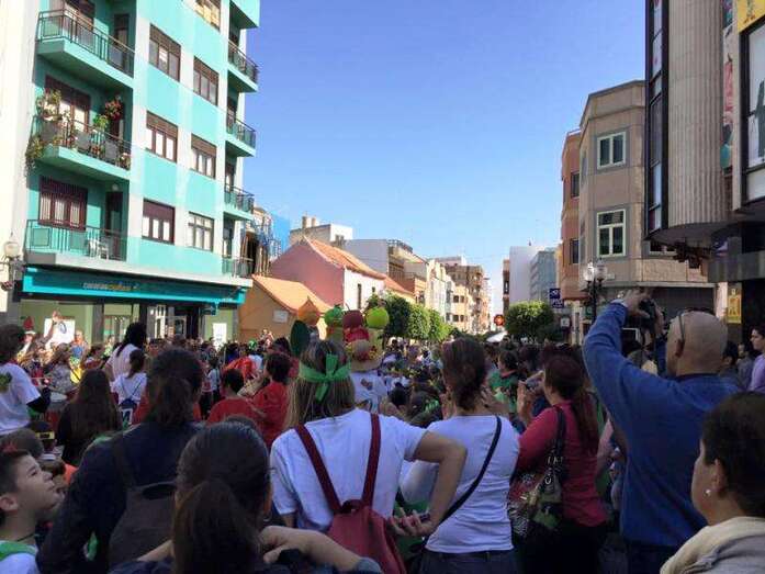 Los diferentes grupos de alumnos de Infantil y Primaria, acompañados de profesores y padres y madres, desfilaron de forma armoniosa ataviados con disfraces alusivos a naranjas, plátanos, fresas, piñas, manzanas y otras frutas y verduras, ya que toda vez que la fiesta se enfocó en concordancia con el proyecto de salud que se desarrolla en el centro desde varios años y el profesorado quiso aprovechar este momento festivo del curso para promover una campaña dirigida a la mejora de los hábitos de vida y alimentación de la población infantil y adulta de Telde.