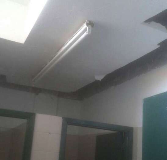 Extintores caducados, ventanas rotas, puertas y cerraduras en mal estado, bordillos dañados o grietas en los techos de las aulas. Estos son algunos de los desperfectos que se encuentran a diario los alumnos y profesores del colegio público Juan Negrín del barrio teldense de Las Remudas.