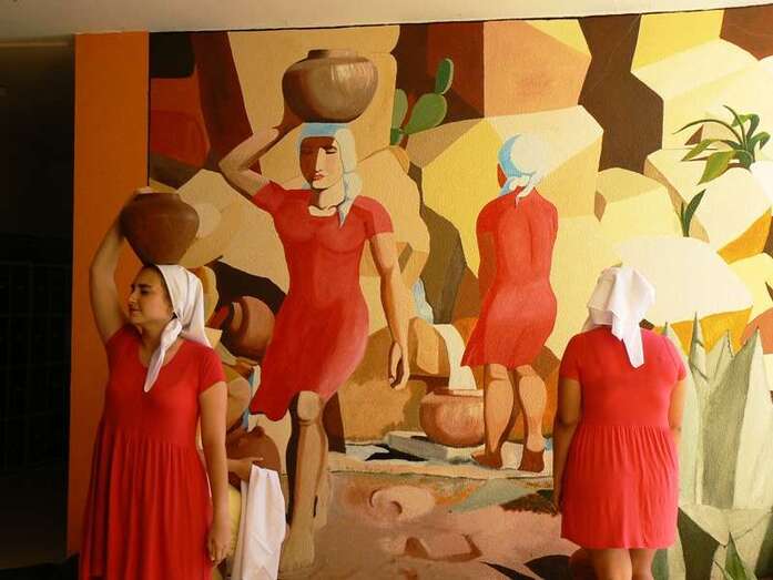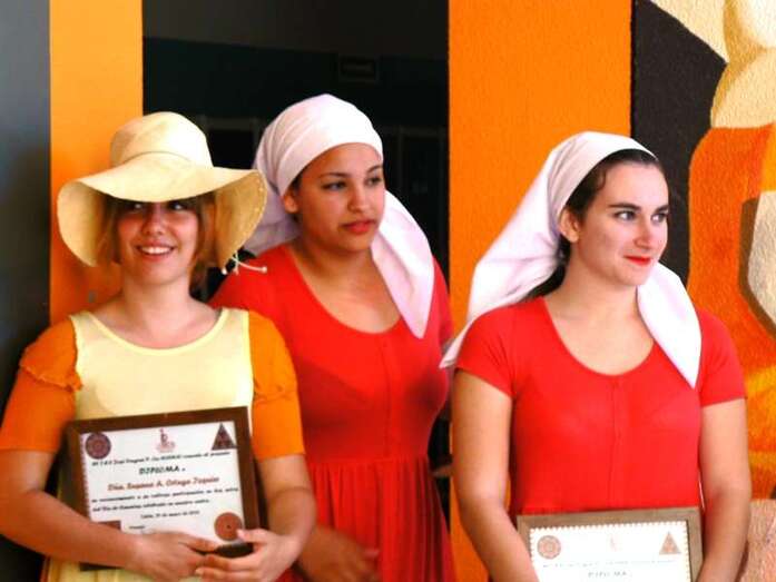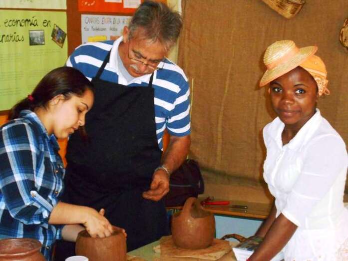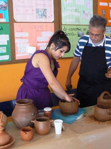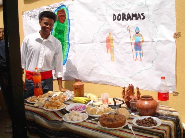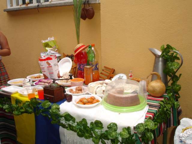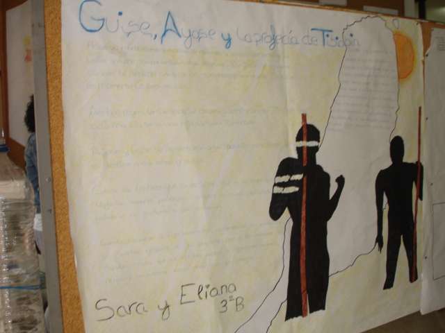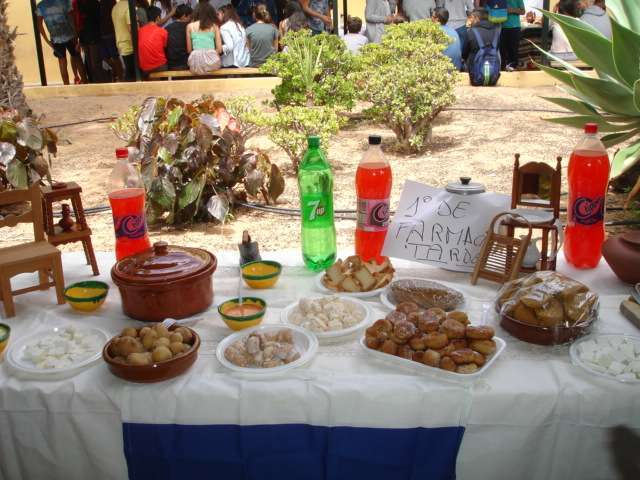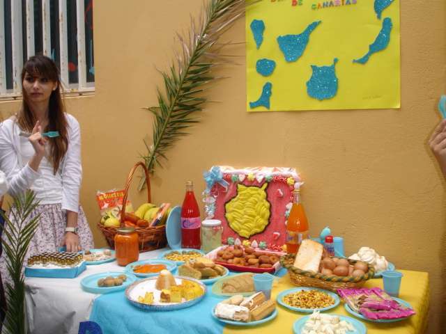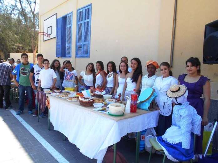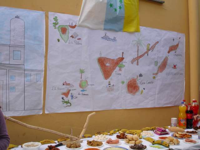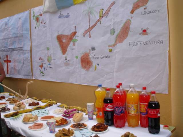 Así se descubrió de forma dramatizada el mural de Las aguadoras de Oramas, realizado en las últimas semanas; hubo mesas canarias preparadas por los diferentes grupos de ESO y 1º de bachillerato, y muestra del trabajo de diferentes artesanos (timple, cestería, cerámica, telares...), bailes, música, etcétera) que contaron con amplia participación del alumnado.