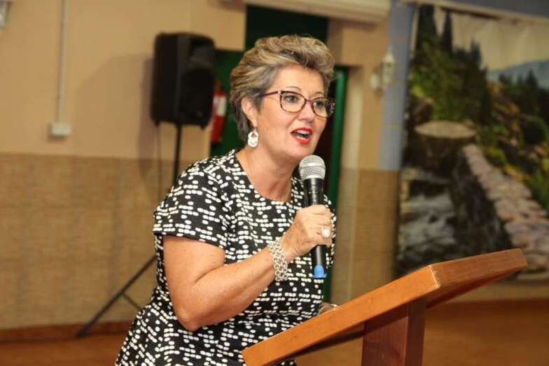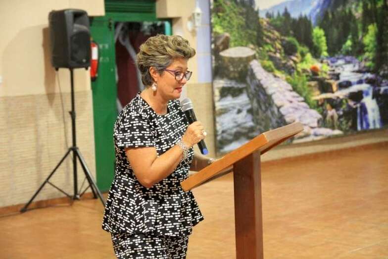 La profesora ya jubilada, Maribel García, en un momento del acto de anoche (Foto Jesús Ruiz Mesa) La profesora ya jubilada, Maribel García, en un momento del acto de anoche (Foto Jesús Ruiz Mesa)