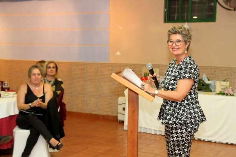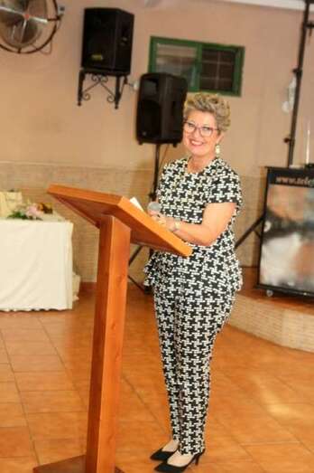 Se hace entrega de un ramo de flores a doña Carmen Zapata Montoya, madre de la homenajeada Maribel García Zapata. Con la entrega de regalos, recuerdos y detalles de este entrañable acto, interviene la Alcaldesa de Telde, Da. Carmen Hernández Jorge que expresa: Sumarme a las palabras de las compañeras que la conocen mejor que yo, y quiero decir como invitada en condición de representante del Ayuntamiento y un grupo de la Corporación, me ha sido de gran satisfacción asistir y poder compartir con Maribel, su familia y amigos, aunque tuve la oportunidad de conocer cuando fui Concejala de Educación, en esa etapa en la que iba mucho al Esteban Navarro porque el director me llamaba con insistencia toda la semana, y en su trabajo Pepe reclamaba nuestra atención. Maribel siempre me pareció una mujer como han descrito aquí,  comprometida, llena de cordialidad, sonrisa, amabilidad y el saber estar que creo que la hace además de una gran docente una gran persona. Te traemos un detalle en nombre de la Corporación, de un gran valor sentimental realizado por un artesano de Telde en cuyo lema se expresa el reconocimiento a toda una vida dedicada a la docencia. Muchas gracias.