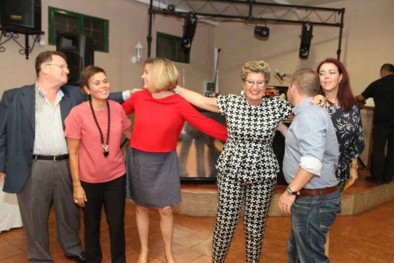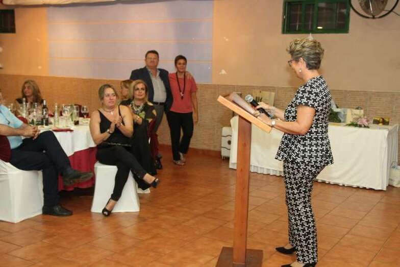 Telde.- La comunidad educativa del CEIP Esteban Navarro de El Calero brindó este viernes por la noche una cena homenaje por su jubilación a la profesora Maribel García Zapata. El evento se celebró en la Finca La Granja, en el municipio de Ingenio, y el ágape fue servido por el cáterin Carben. García estuvo arropara sus compañeros, familiares y amigos. Asistió también la alcaldesa de Telde, Carmen Hernández. TA ofrece crónica y reportaje gráfico de Jesús Ruiz Mesa.