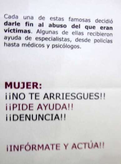 Cuarto: Pedimos un mayor seguimiento de los posibles casos ocultos pues mucha gente no denuncia su situación por miedo a las represalias de sus agresores. Quinto: Declaramos que toda mujer y todo hombre tienen derecho a la vida, a la igualdad, a la seguridad, a un trabajo justo y a no ser torturado. Y por último exigimos a las autoridades académicas que en los centros se imparta una educación basada en la igualdad de género para que los jóvenes aprendan a respetar y a saber comportarse en sociedad, empezando desde sus casas. Así las nuevas generaciones evitarán el maltrato”. Muchas gracias por apoyarme.