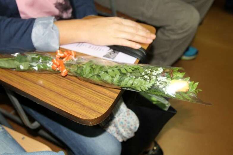 El acto finaliza con una ofrenda floral que el alumnado del CEPA TELDE Casco, depositan en memoria de las víctimas de la violencia de género. Otra violencia, la terrorista, que no deja de sorprendernos como el atentado cometido en París del que las noticias y crespones negros en señal de luto y memoria de los fallecidos nos entristecen. Un mundo envuelto en serios problemas que las sociedades del siglo XXI deben acometer y buscar soluciones. Muchas gracias.