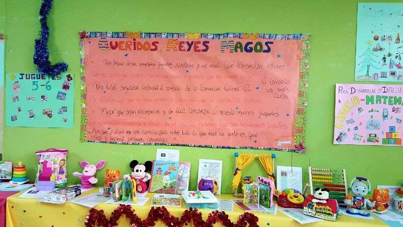 En la colectiva, un espectáculo motivador de creatividad y color, se orienta y clasifica los diferentes tipos de juguetes y la adecuación de estos a las diferentes edades y periodos evolutivos de los niños en unas fechas en las que esta información es necesaria. También se exponen materiales de iniciación a la lengua extranjera y para el control de las emociones, todos ellos elaborados íntegramente por el alumnado del ciclo coordinados por las docentes de los módulos.