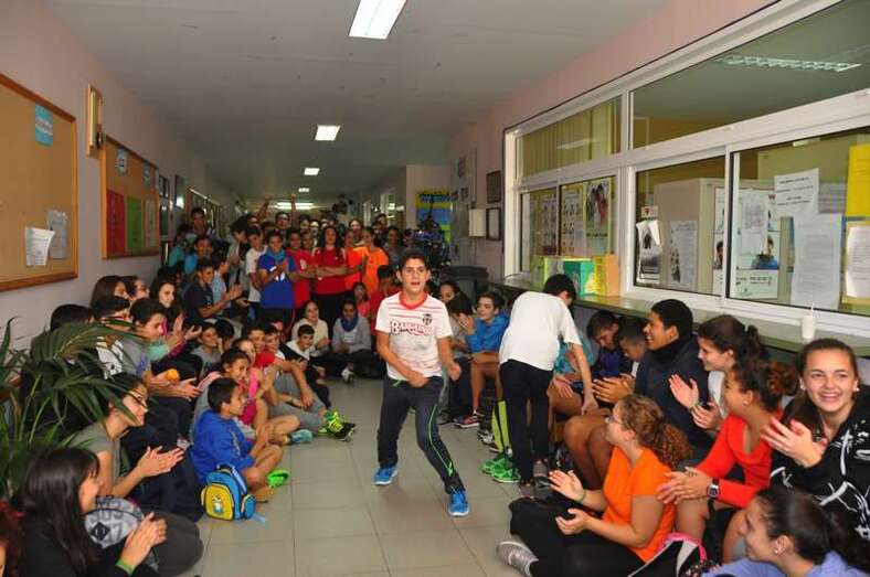 Pese a que la lluvia obligó a trasladar el evento al interior de la instalaciones, no fue impedimento para continuar con las olimpiadas. Con la ayuda de la megafonía se llevaron a cabo diversas actividades relacionadas con la expresión corporal y el baile. Las palmas, las sonrisas y la danza hicieron olvidar por momentos el frío y la lluvia.