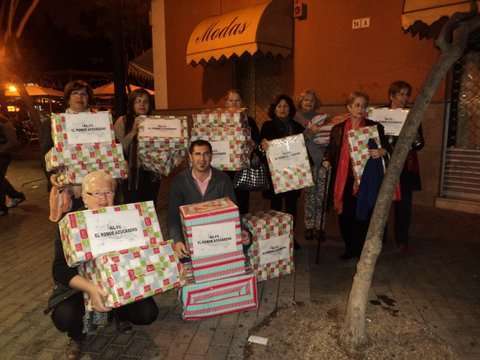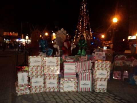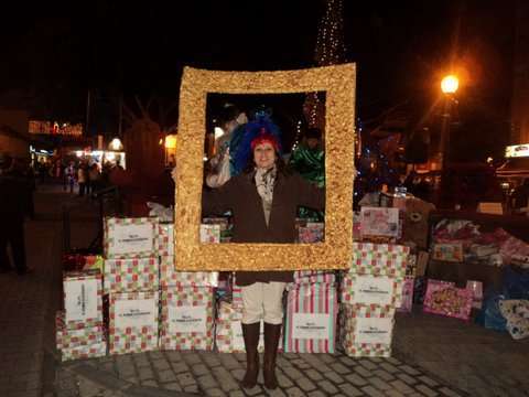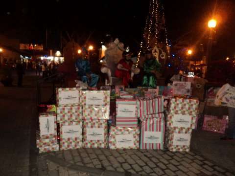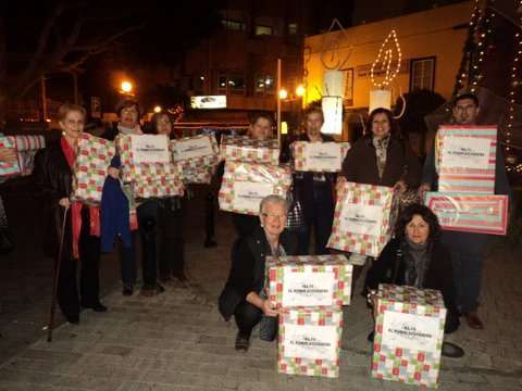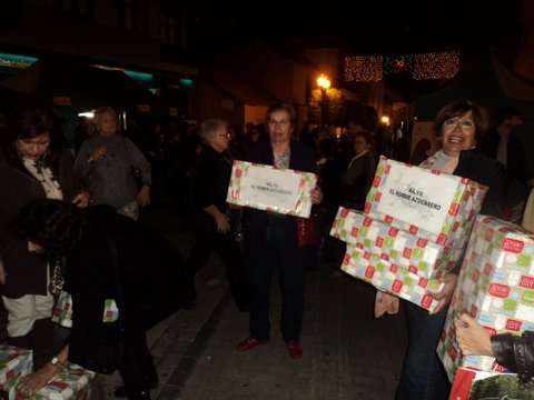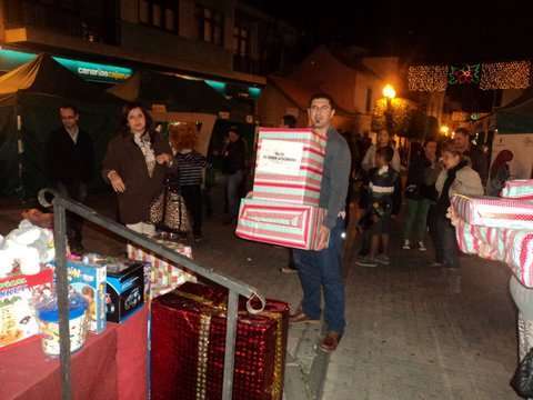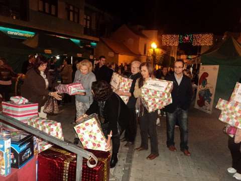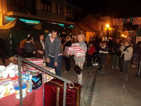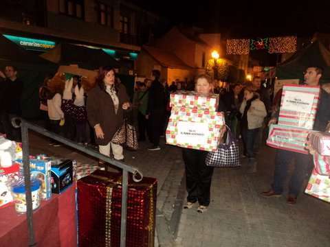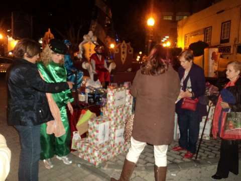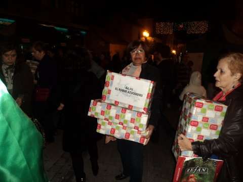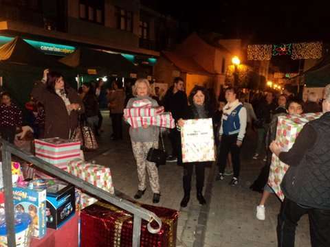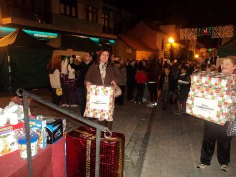 Momento de la entrega de cajas con juguetes a los Pajes Reales en San Gregorio (Foto TA)
