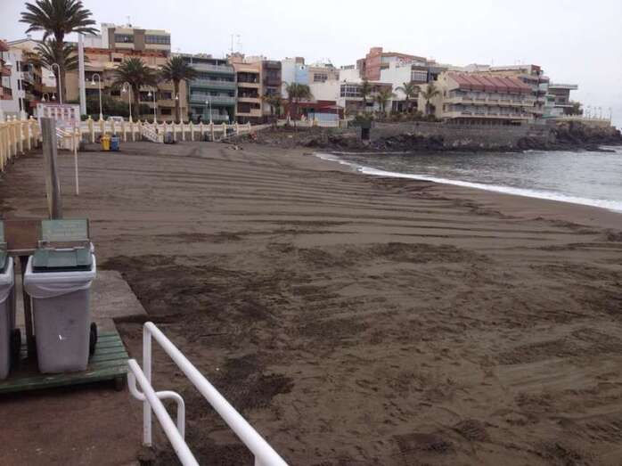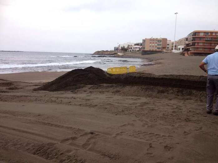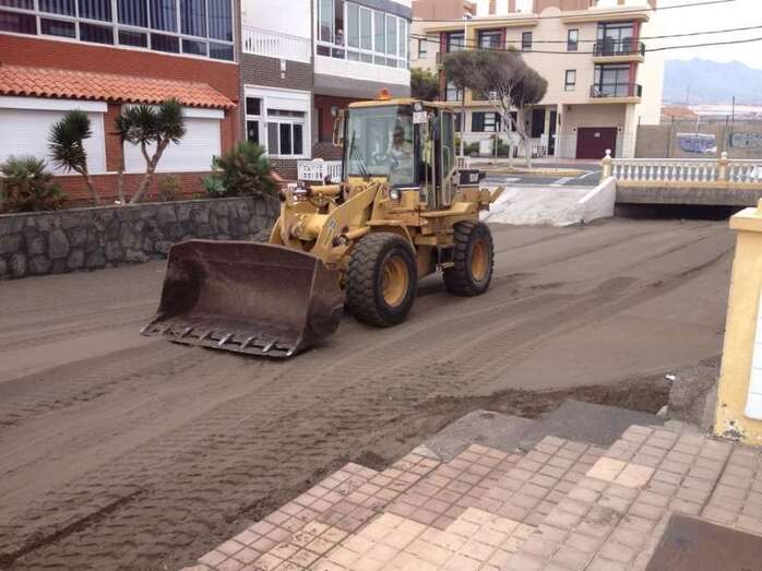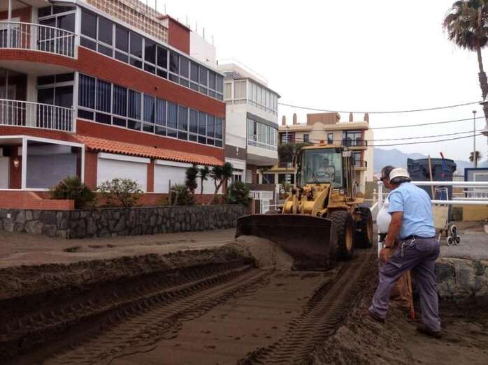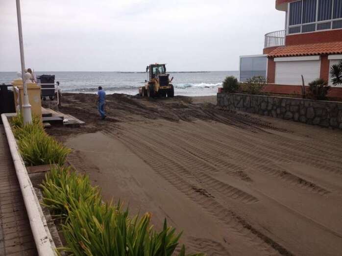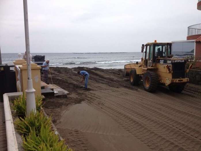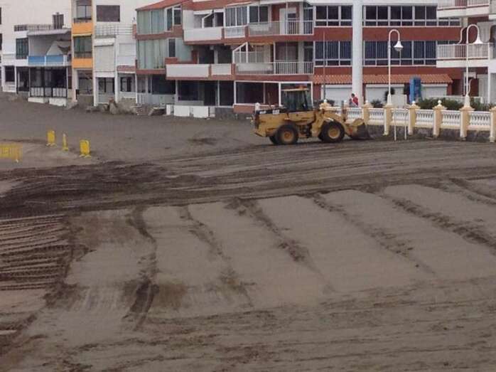 Tractor en las tareas de recolocación de la arena en Salinetas (Foto TA)