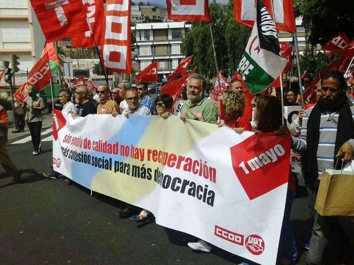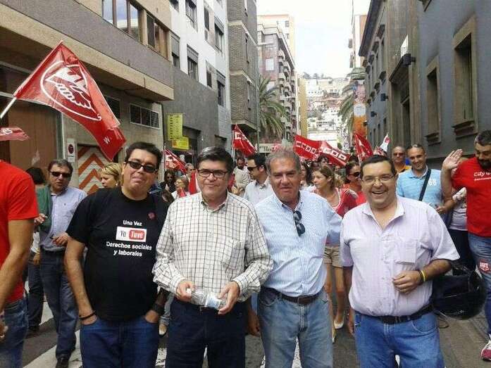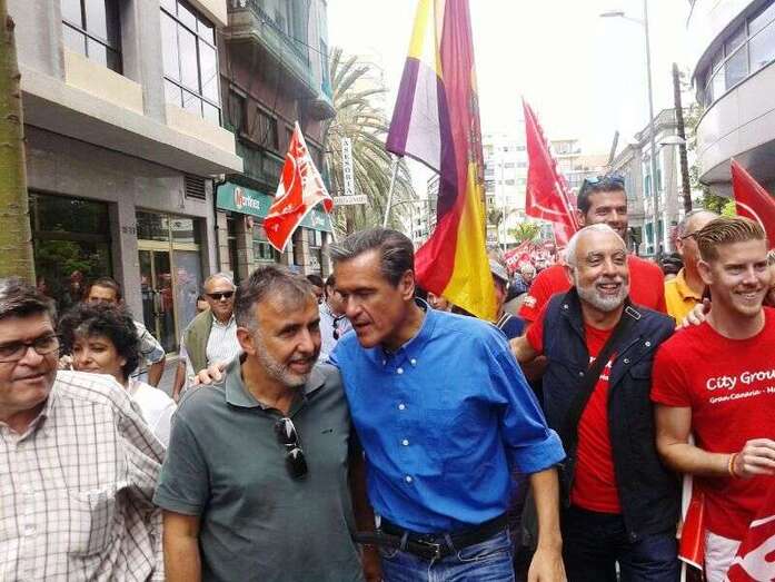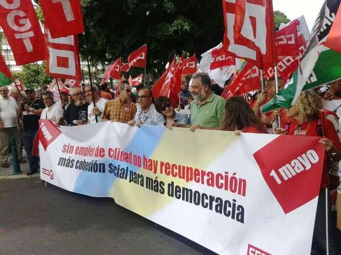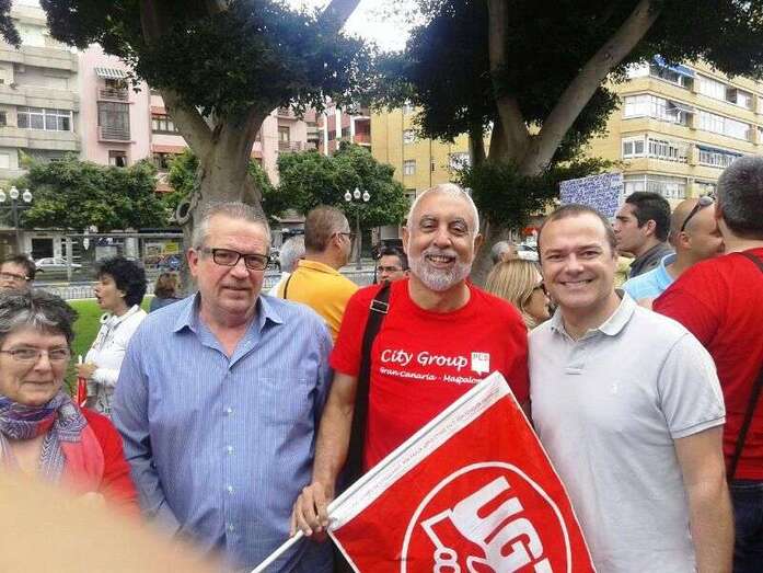 Sindicatos y colectivos ciudadanos de Gran Canaria han participado este jueves 1 de mayo en la manifestación celebrada en la capital grancanaria con motivo del Día Internacional del Trabajador. En la protesta que comenzó a las 11.00 horas desde la plaza del Obelisco hasta el parque San Telmo intervinieron vecinos y cargos públicos de Telde como el concejal socialista Alejandro Ramos y la edila nacionalista (NC), Fefi Milán. También lo hizo la consejera insular teldense Inés Jiménez (NC) y el que fuera alcalde de la ciudad, Francisco Santiago, entre otras personas. TELDEACTUALIDAD ofrece reportaje gráfico de la protesta.