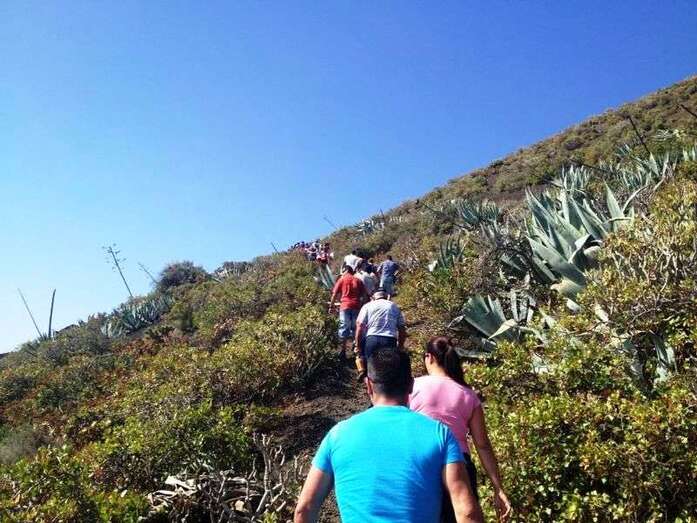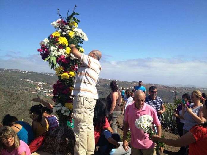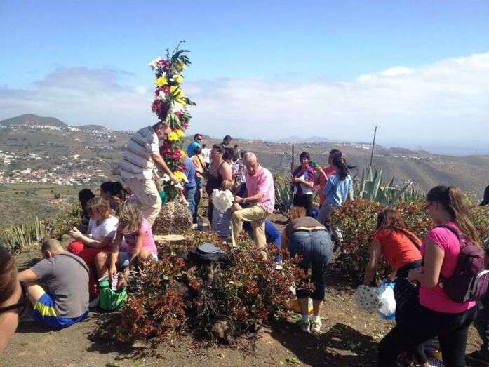 Un grupo de vecinos de los sectores de Lomo Blanco y Hornos del Rey, de Jinámar, subió este jueves hasta la Montaña de la Cruz para cumplir con la tradición del enramado de la cruz existente en la cima de este accidente orográfico. La caminata se inició pasadas las 10.30 horas desde la pequeña ermita de Lomo Blanco. Participaron medio centenar de jóvenes y adultos. TA ofrece reportaje gráfico.