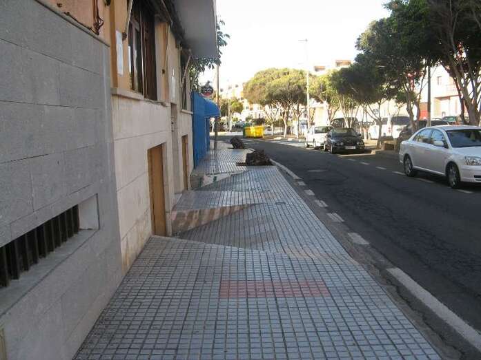 Vallas colocadas en Salinetas para advertir a los peatones de un escalón por la entrada de un garaje (Foto TA)