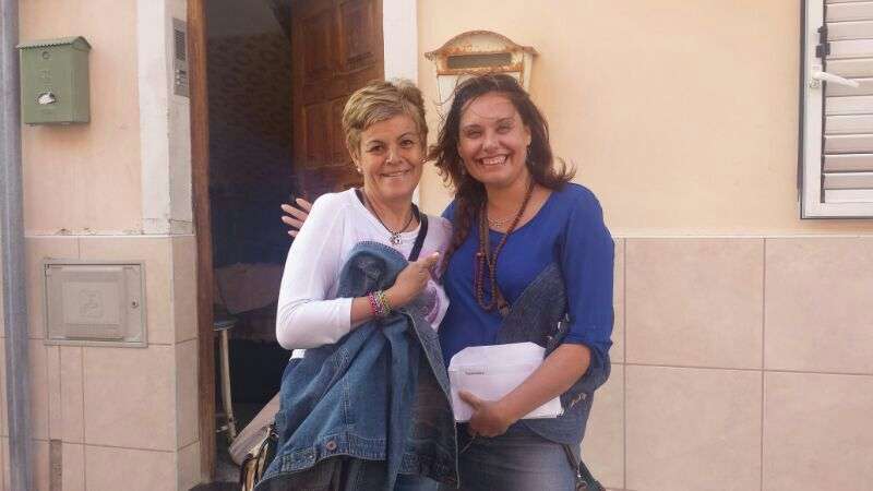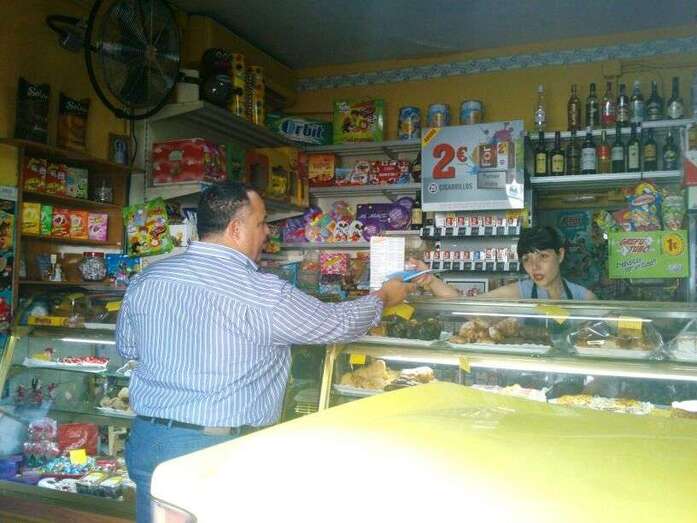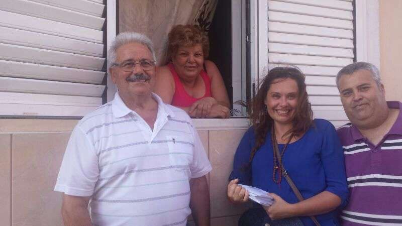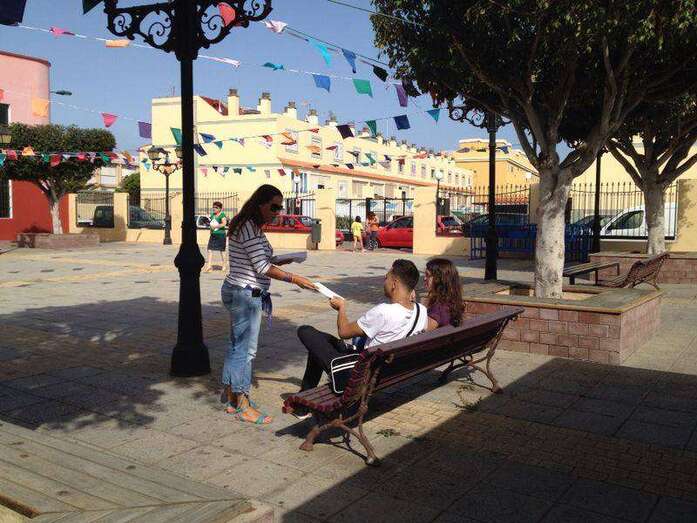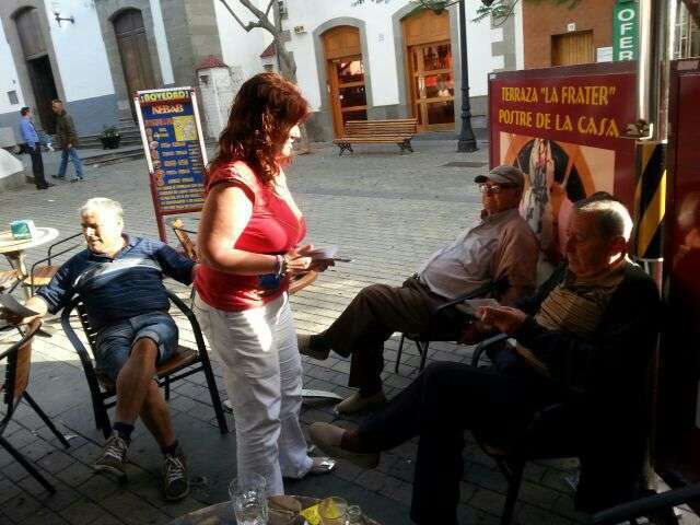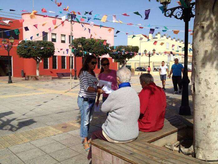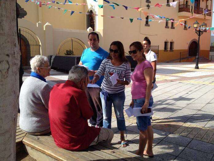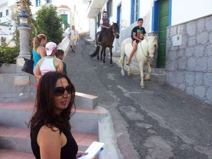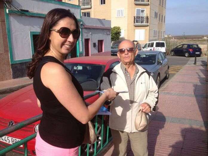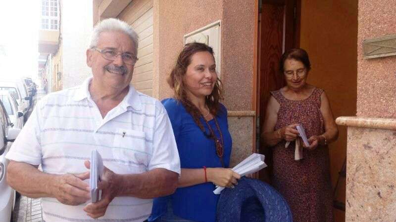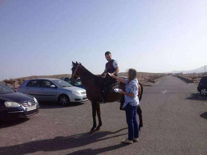 La concejala María González Calderín entrega propaganda a un jinete en Tufia (Foto TA) La concejala María González Calderín entrega propaganda a un jinete en Tufia (Foto TA)