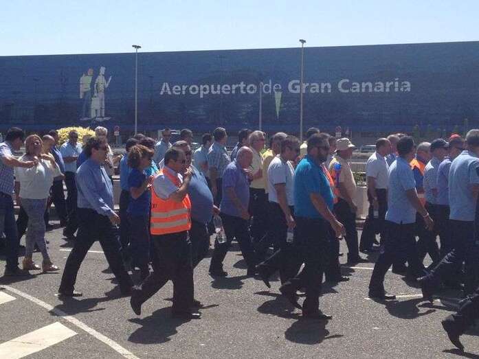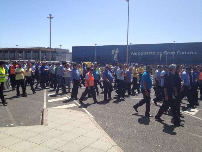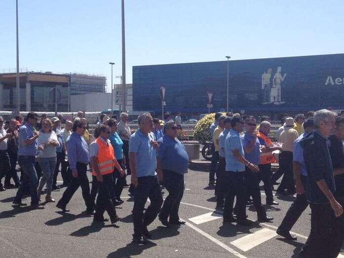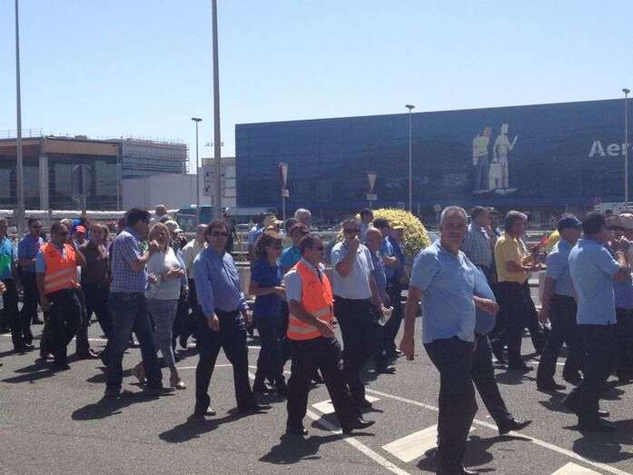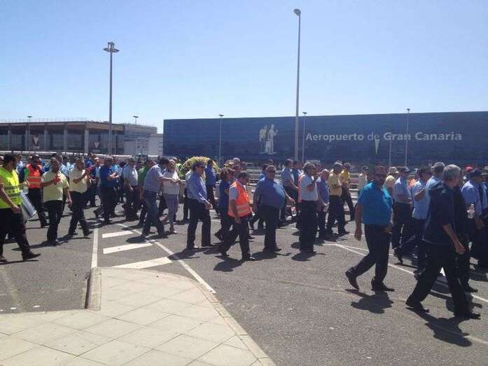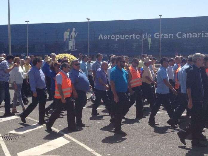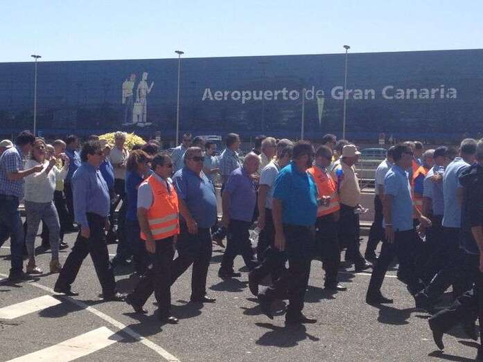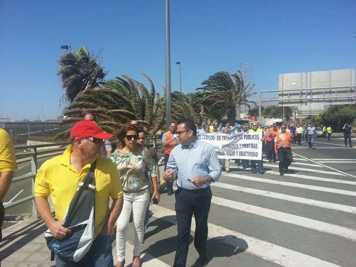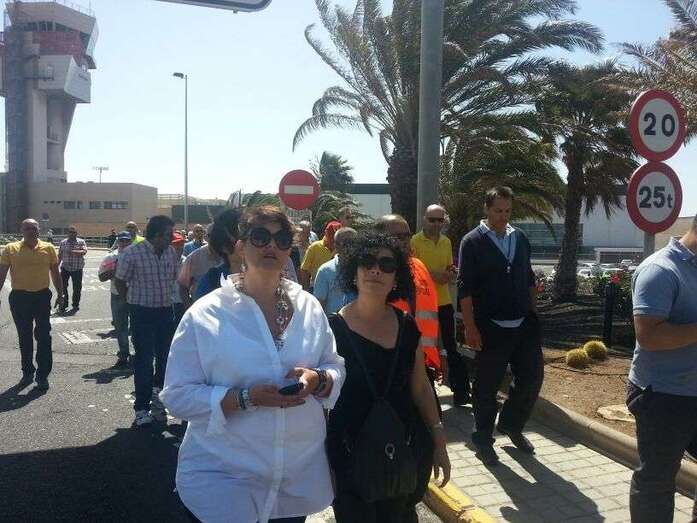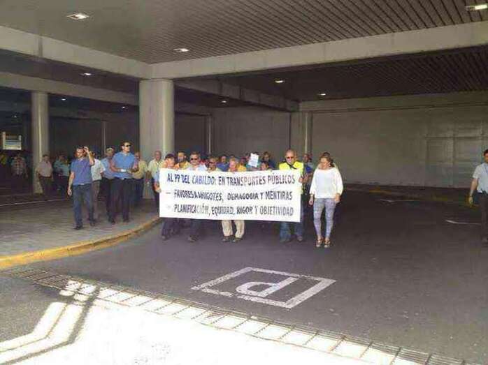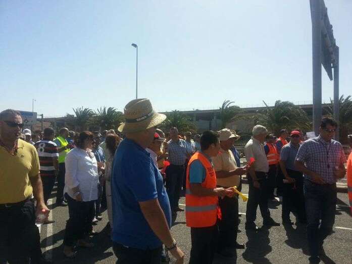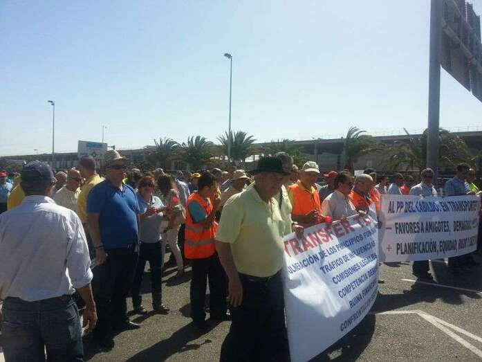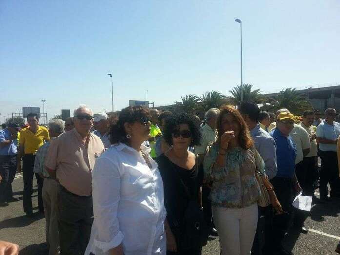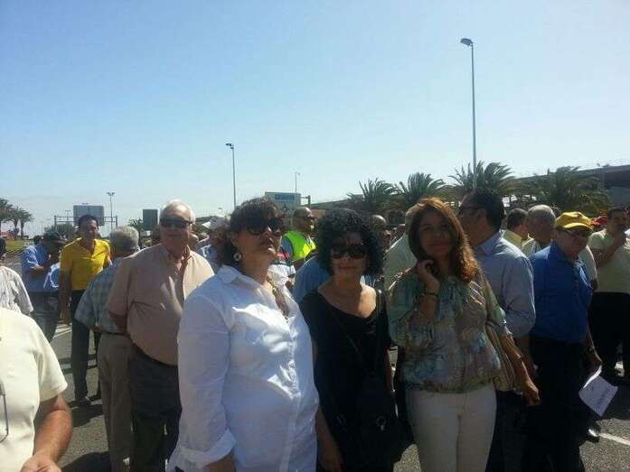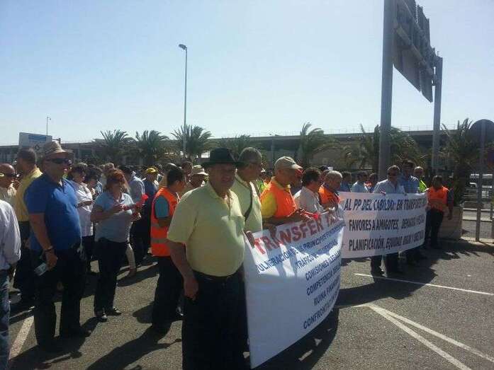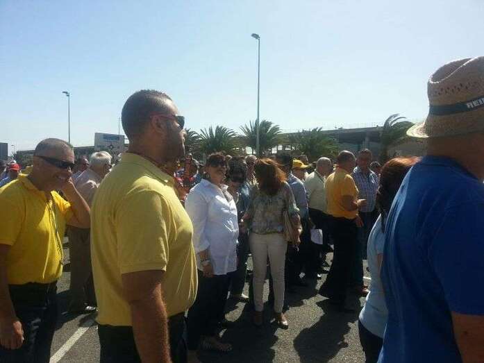 Taxistas de Telde e Ingenio junto a Mari Carmen Castellano durante la protesta de este viernes en Gando (Foto TA)
