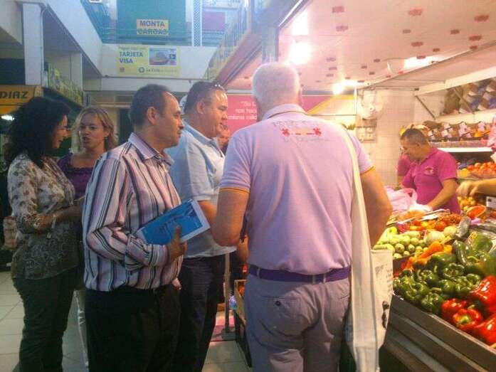 El Partido Popular de Telde centró esta mañana el desarrollo de la campaña electoral para los comicios europeos en el Mercado Municipal. Un nutrida representación de los populares teldenses recorrió la plaza de abastos repartiendo su programa entre comerciantes y usuarios. Entre ellos Sonsoles Martín, Franciso Santana, Antonio Hernández Lobo o la diputada nacional Matilde Asián. De otro lado, Norberto Sánchez, presidente de las NNGG de Telde, arropó al senador Abel Antón en un acto celebrado en Las Palmas de GC.