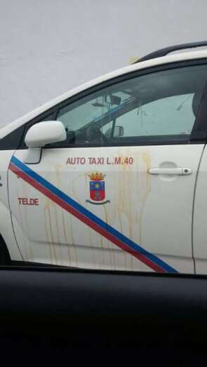 Los taxistas de Telde se llevaron una desagradable sorpresa cuando este mediodía regresaron a la ermita de Santa Rita, en Ojos de Garza, después de llevar a cabo la tercera jornada de protesta en el Aeropuerto de Gran Canaria. Allí comprobaron que una decena de vehículos habían recibido una huevada aprovechando su ausencia. Y es que ante la prohibición de acceder con los coches al al interior del recinto aeroportuario para desarrollar las movilizaciones, los profesionales han optado por estacionarlos en una explanada junto al templo. Por lo pronto desconocen quién o quiénes han sido los protagonistas de este acto vandálico que condenan enérgicamente.