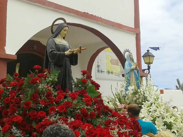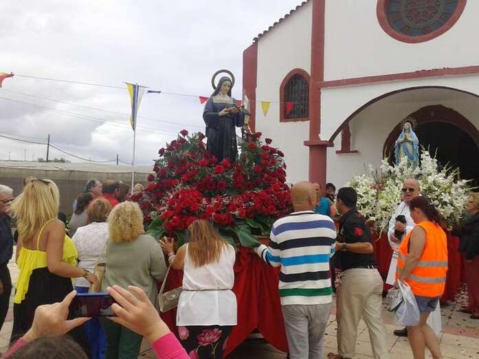 El núcleo poblacional de Ojos de Garza procesionó este domingo después de la eucaristía del mediodía a su patrona Santa Rita por las calles próximas a su templo, en un recorrido que estuvo acompañado por la Banda Municipal de Música, un nutrido grupo de vecinos y una representación institucional encabezada por la alcaldesa Mari Carmen Castellano. TA ofrece reportaje gráfico.