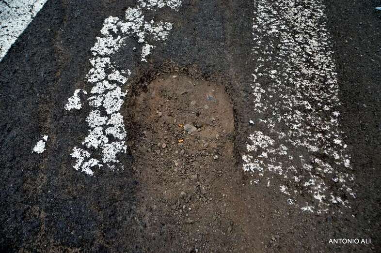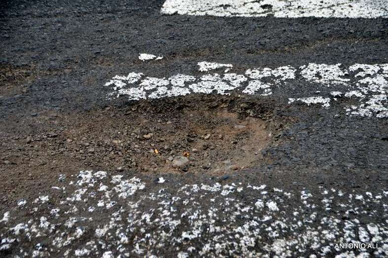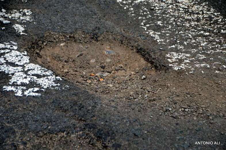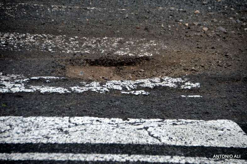 Está en plena calle de Roque del Salmor, en Lomo de la Herradura. El socavón es bien visible y es un autentico peligro para los vehículos y los transeúntes, ya que se encuentra a la altura del paso de peatones que a diario cruzan cientos de alumnos que acuden al centro escolar de la zona. El Ayuntamiento tiene conocimiento de este bache, pero hasta la fecha ha hecho oído sordo a las denuncias vecinales. TA ofrece reportaje gráfico de la queja ciudadana.