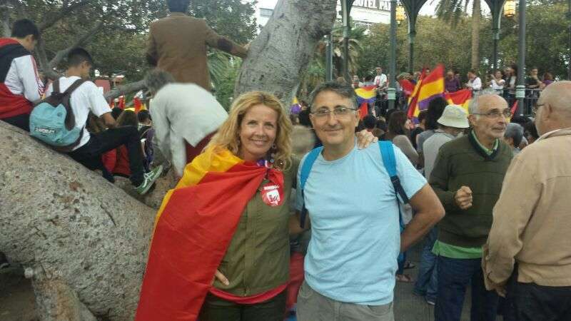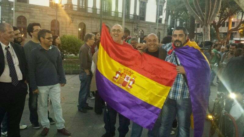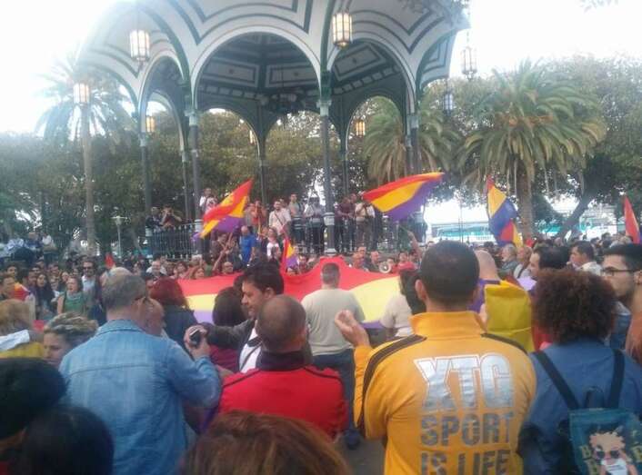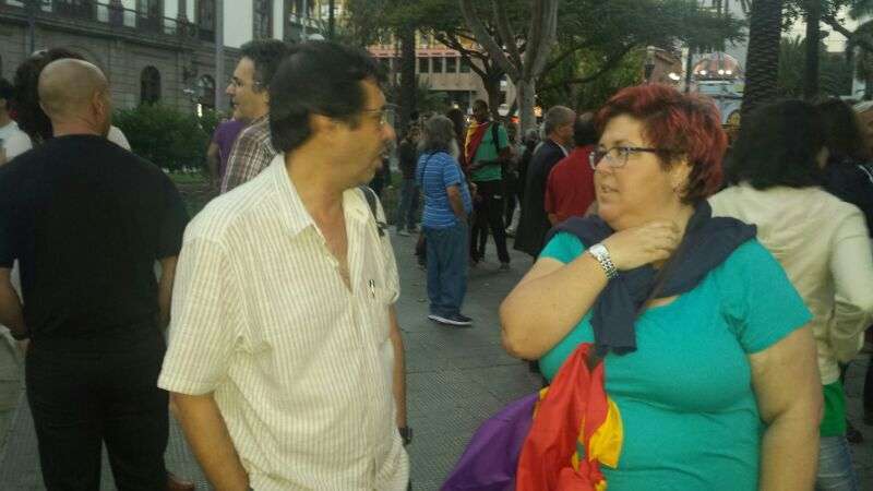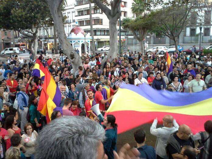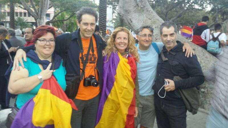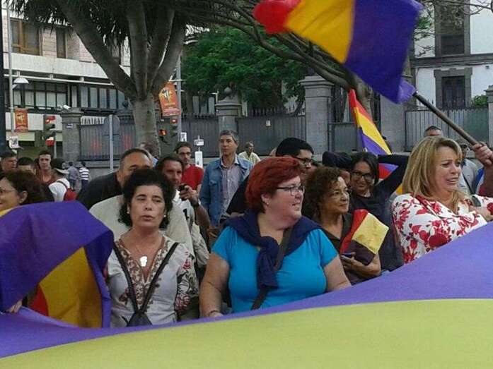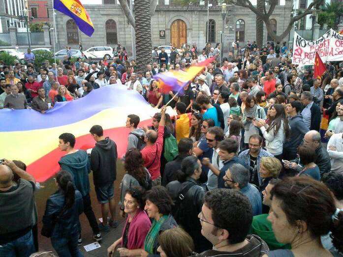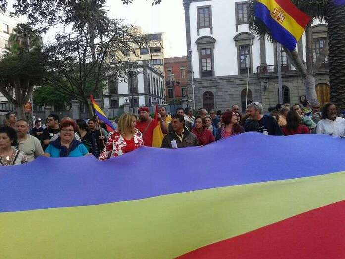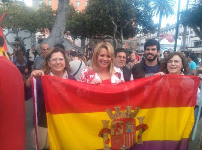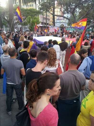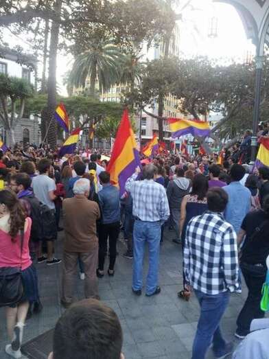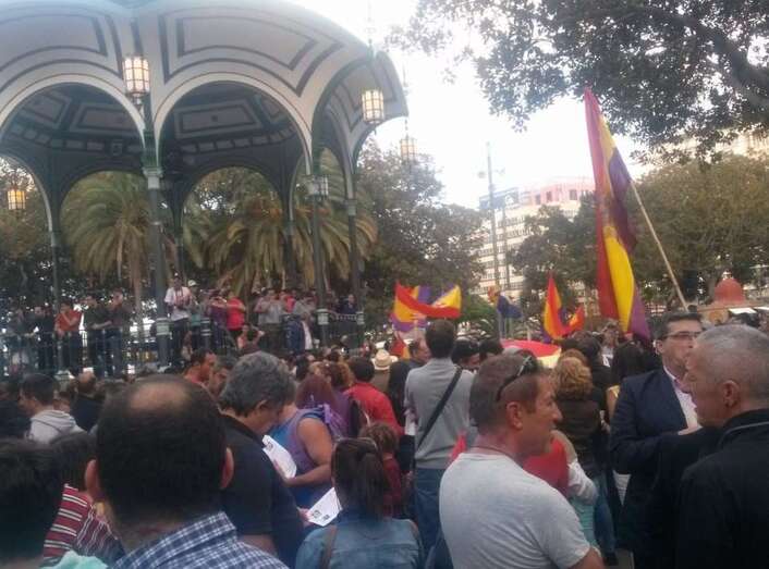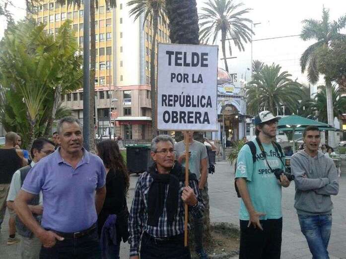 Un grupo de teldenses participó activamente este lunes en la concentración celebrada en el Parque San Telmo de la capital grancanaria a favor de la República y para reclamar un referéndum en el que el pueblo decida si quiere que continúe o no la monarquía tras la abdicación del Rey. En el acto la bandera tricolor republicana ha sido la protagonista. Entre los asistentes se encontraban la concejala nacionalista Josefa Milán (NC), la consejera insular socialista Isabel Guerra y conocidos activistas de izquierda y sindicalistas, como el también teldense Juan Miguel Suárez (CCOO). TA ofrece imágenes de la concentración.