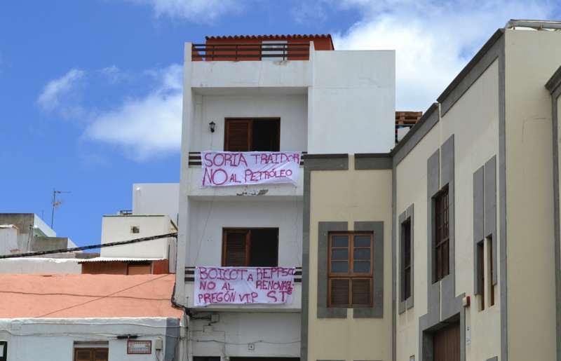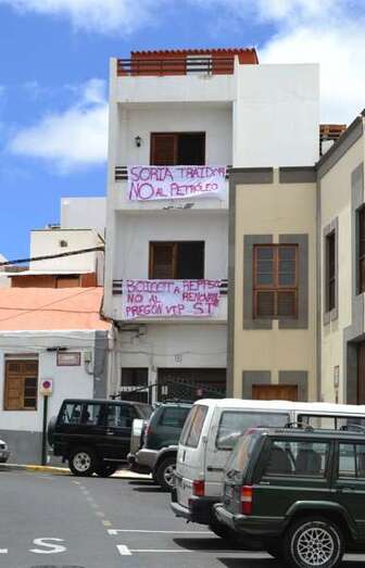 Algunos balcones de San Juan han comenzado a lucir pancartas en contra del pregón que este miércoles dará el ministro José Manuel Soria con motivo de las fiestas del barrio. En concreto, esta queja puede verse en una vivienda de la calle Los Sabandeños, donde sus inquilinos piden boicotear el acto. Diversos colectivos han convocado ya una protesta durante el evento que anuncia el inicio de las actividades en honor al patrono.